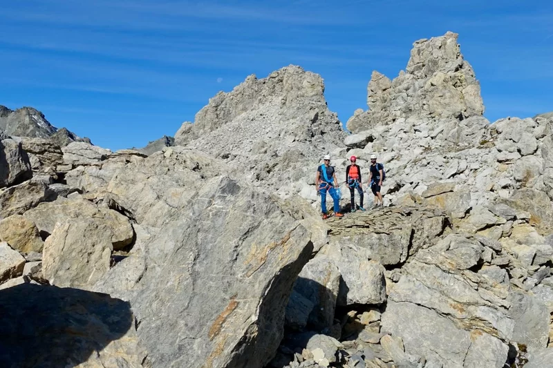 Piz Malmurainza 3037 müM Die Südlage hat die gleiche Gruppe wie am Vortag, plus Corinne, wieder ins Unterengadin gebracht. Das Wetter war nicht so schön…