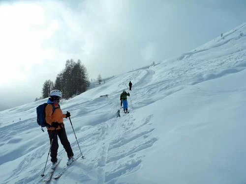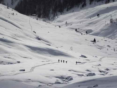 Einfache Tour ab Zuoz zur Es-chahütte mit frischem Pulver, der vor allem von der Hütte aufwärts ziemlich verweht war. Kurzer Halt beim Take-Away der Hütte in der Abfahrt. In der Abfahrt ab der Hütte haben alle den Pulverschnee genossen. Danke allen Teilnehmern. TL Kirsten und Bernd