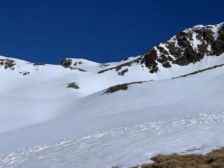 Zustieg über Val da Fain bis kurz vor der Alp la Stretta (2400m), dann über die Südhänge links beim Piz Chatscheder vorbei in Mulde und zum Gipfel des Chantun.