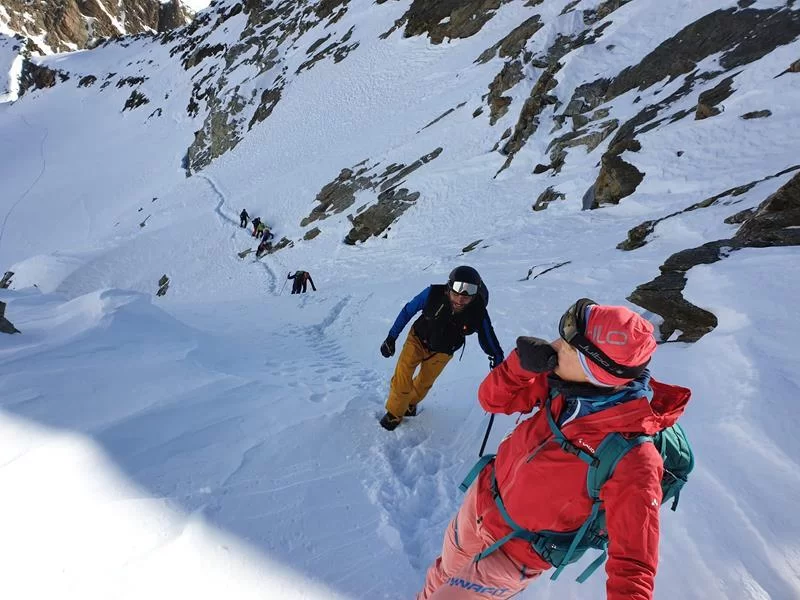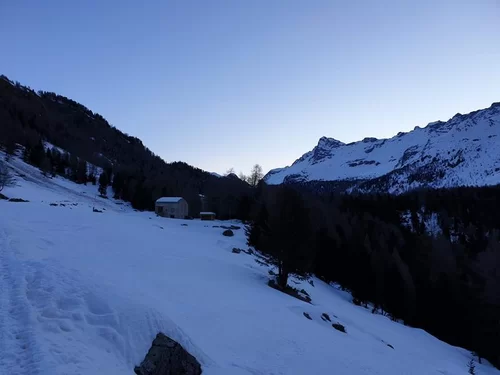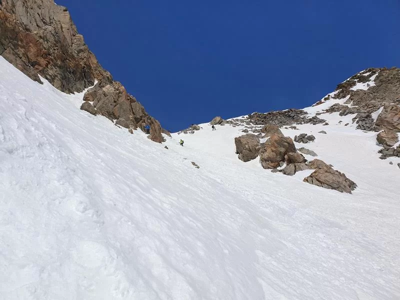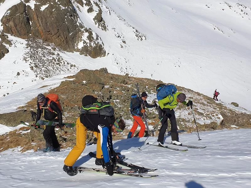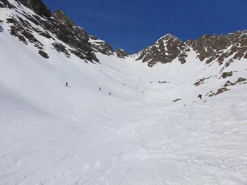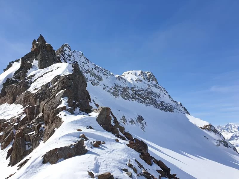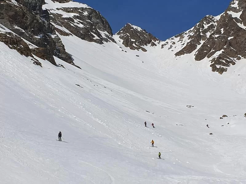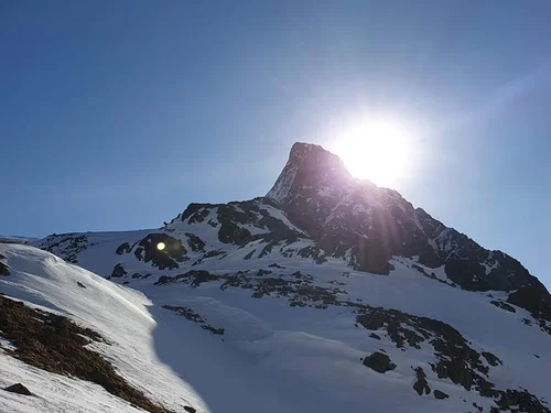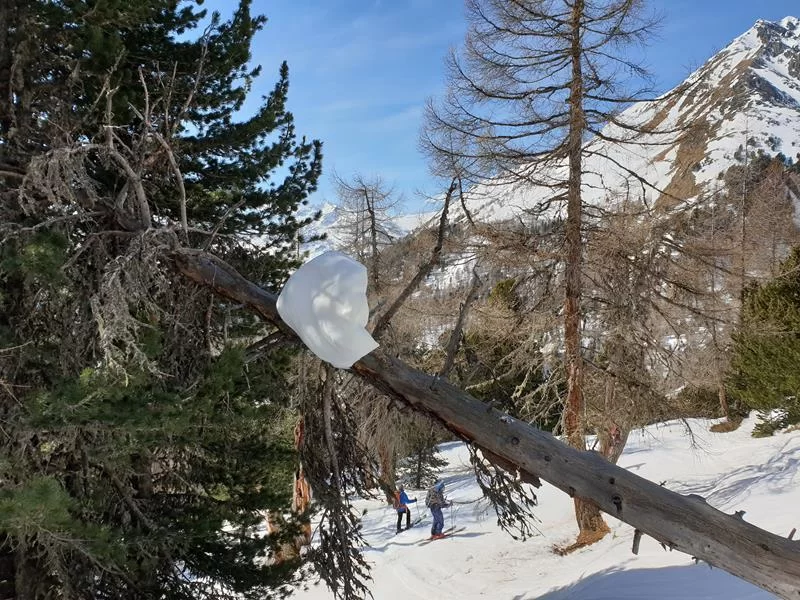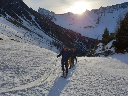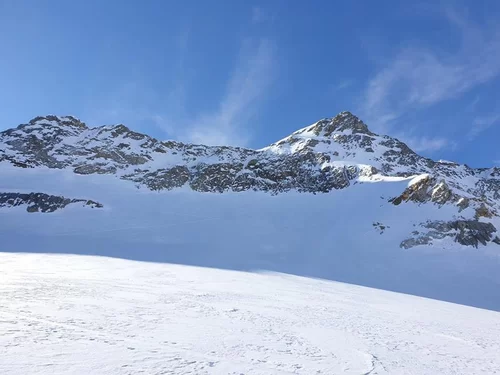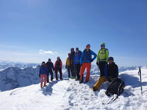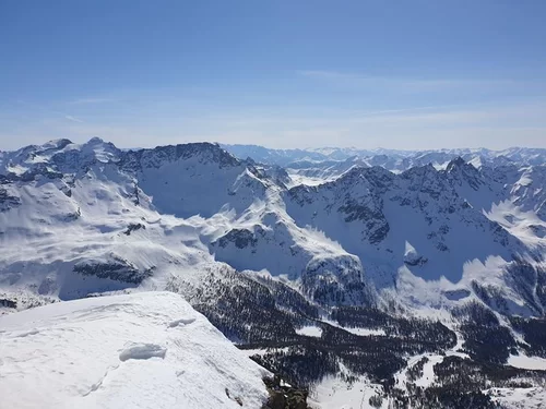 Mit dem ersten Tageslicht sind wir in Sfazu gestartet. Auf dem Weg ging es flott voran , an der Saoseohütte vorbei und weiter ins Val Mera. Hier begrüsste uns die Sonne und wir stiegen weiter hinauf zum Pass da Val Mera. Der angekündigte Südwind war schon da. Weiter in Richtung Gletscher und über diesen dann weiter im Schatten zum Skidepot. Mit gutem Trittschnee waren wir bald auf dem Gipfel, wo der Wind uns wieder erwartete. Dadurch war die Abfahrt über Scispadus nur teilweise aufgesulzt. Weiter unten konnten wir dann doch noch ein paar Schwünge im Sulz geniessen, bevor wir später in den Wald eintauchten und ab der Hütte auf dem Fahrweg zurück nach Sfazu fuhren. Wir haben eine schöne Tour mit herrlicher Aussicht und freudestrahlenden Teilnehmern genossen. Danke an Dorette, Julia, Sylvia, Espen, Domenic, Hanspeter, Herbert und Stefan sowie an Rainer für die Unterstützung.TL Bernd