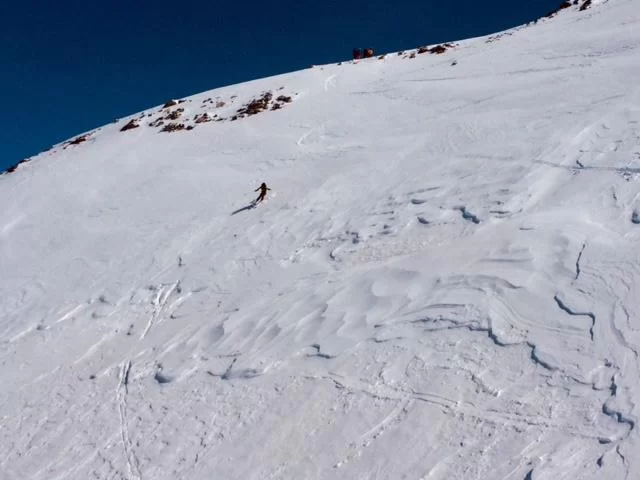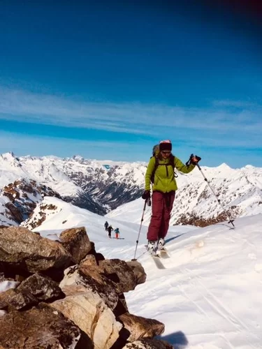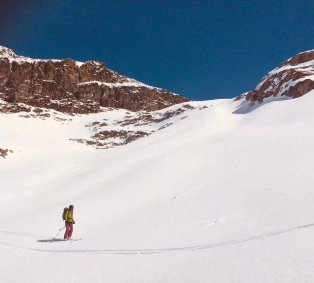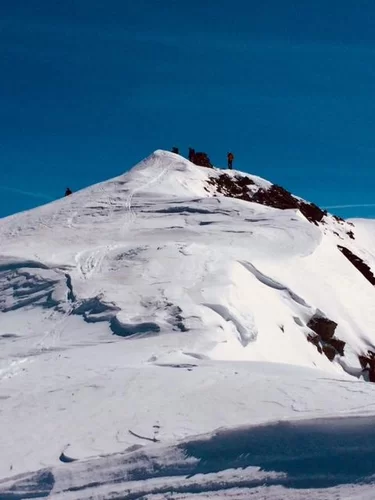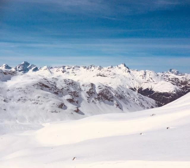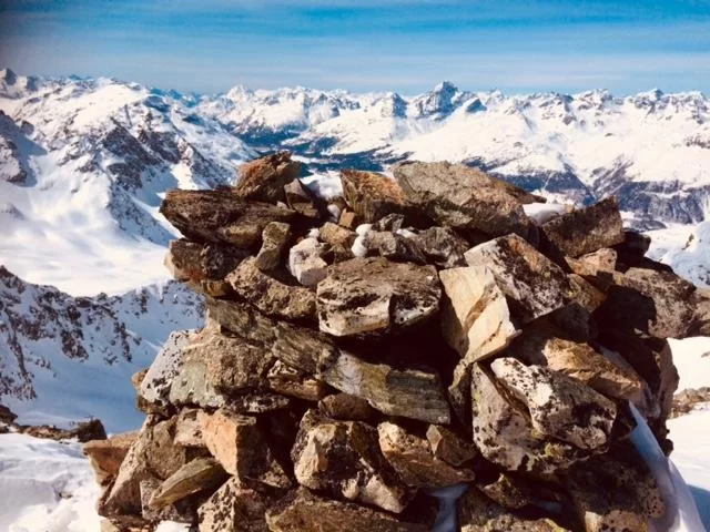 Skitour ab dem Dorf Samedan. Zuerst auf der LL-Loipe zum Rest. Gravatscha. Durch den schrillen Wald und steil hoch durch das Val Champagna. Begleite oder eher angegriffen von einem kalten Bergwind. Eine letzte Steilstufe hoch und kurz über den Grat zum grossen Steinmann des Corn Vadret. Tolles Panorama und windstill wars hier oben. Die Abfahrt war dann ein wenig Triki. Mal Pulver dann wieder Windharsch, wenig Sulz. Verschiedene Schneearten also. Sehr angenehme Gruppe. Besten Dank an Trix, Daniel, Ruedi, Espen und Karin. Auf ein Andermal, TL David.