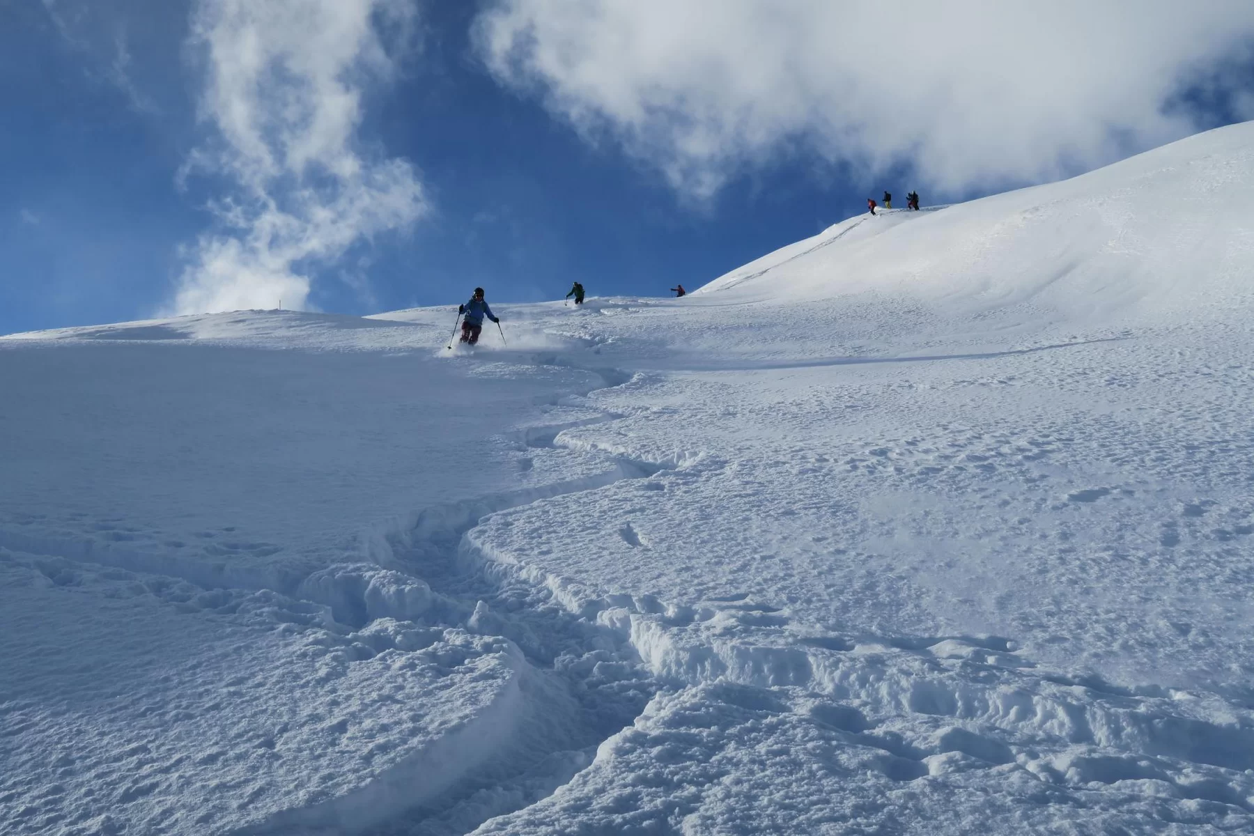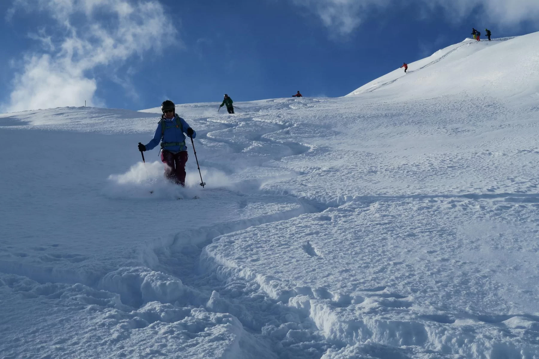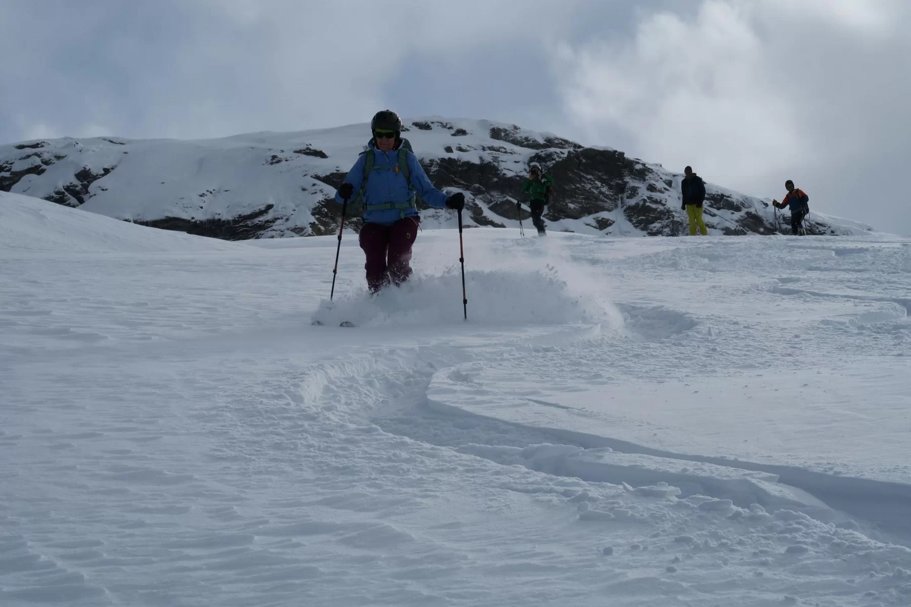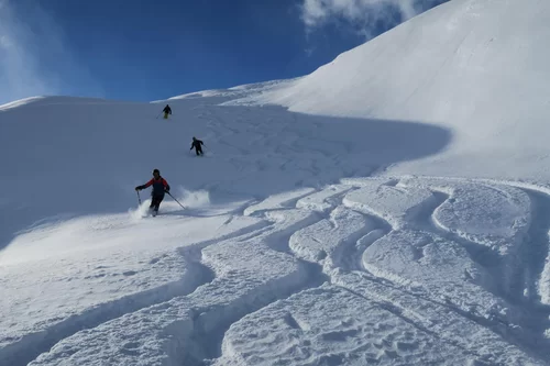 Es hat sich gelohnt etwas früher aufzustehen. Nach der Begrüssung bei der Post in St. Moritz Bad ging es in Richtung Julierpass. Zu dieser Zeit wussten wir noch nicht, was uns auf der Nordseite des Julierpasses erwartete. Der Blick ab Passhöhe in Richtung Norden war viel versprechend. Die Prognosen waren einmal mehr nicht zutreffend und auch die erwartete Störung traf mit Verspätung ein, bzw. nicht dort ein, wo die Sektion Bernina unterwegs war. Im Gebiet haben wir beste Verhältnisse angetroffen, weshalb etwas höher aufgestiegen sind als zuerst geplant war. Der obere Hang haben wir sogar zweimal befahren, weil die Schneeverhältnisse so gut waren. Danke an Bert für die wertvolle Unterstützung und den Teilnehmerinnen und Teilnehmer für die Disziplin. Mit hat es gut gefallen. Bis zur nächsten Tour.