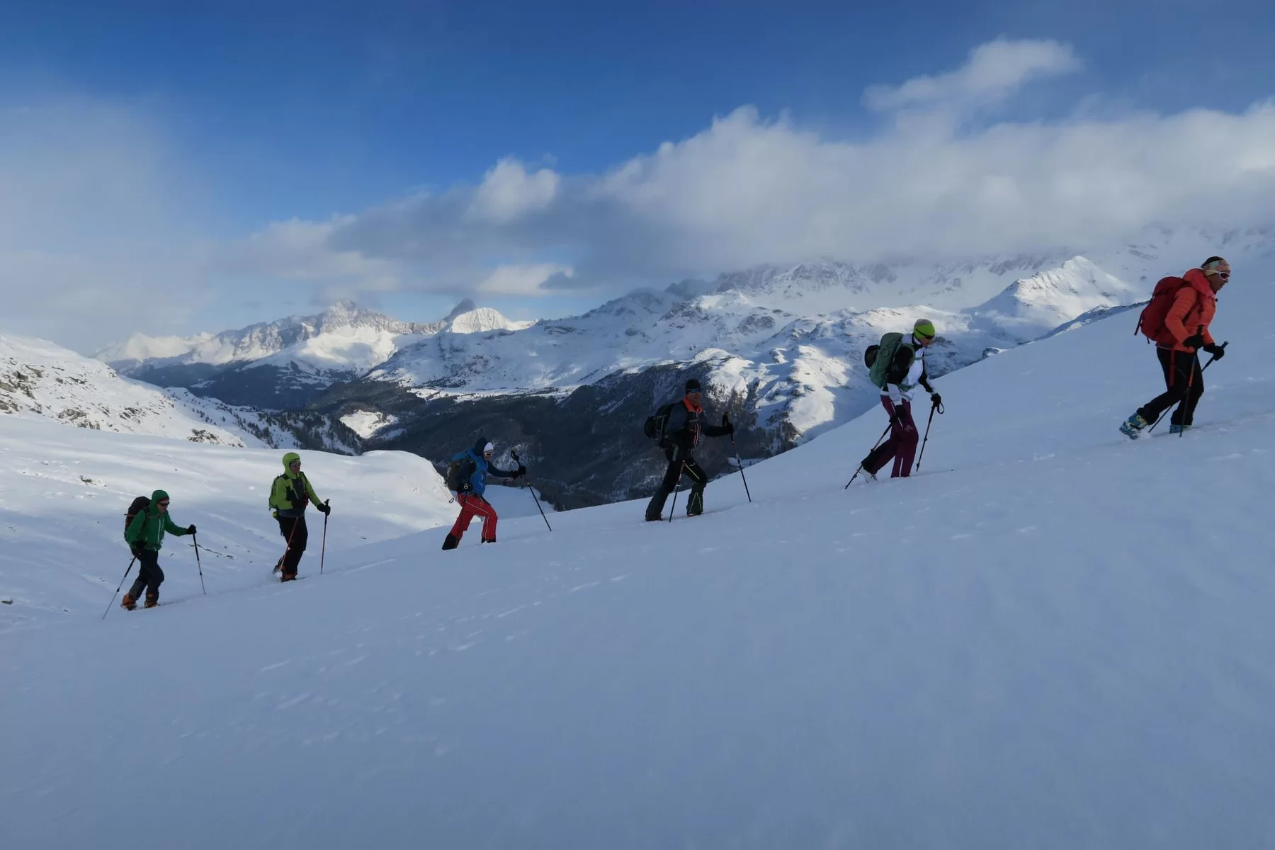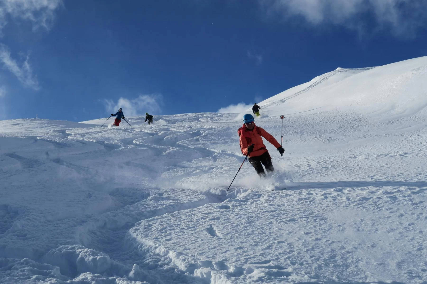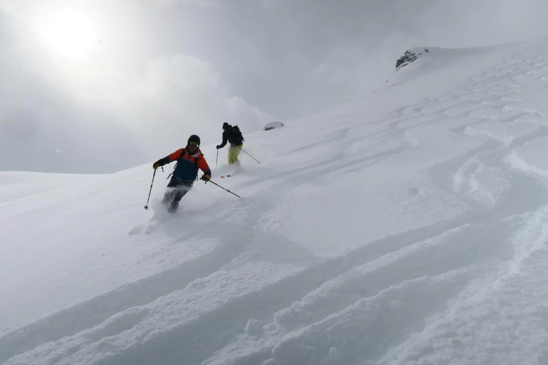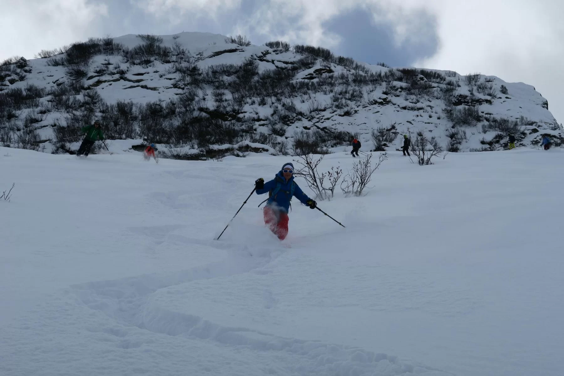 Es hat sich gelohnt etwas früher aufzustehen. Nach der Begrüssung bei der Post in St. Moritz Bad ging es in Richtung Julierpass. Zu dieser Zeit wussten wir noch nicht, was uns auf der Nordseite des Julierpasses erwartete. Der Blick ab Passhöhe in Richtung Norden war viel versprechend. Die Prognosen waren einmal mehr nicht zutreffend und auch die erwartete Störung traf mit Verspätung ein, bzw. nicht dort ein, wo die Sektion Bernina unterwegs war. Im Gebiet haben wir beste Verhältnisse angetroffen, weshalb etwas höher aufgestiegen sind als zuerst geplant war. Der obere Hang haben wir sogar zweimal befahren, weil die Schneeverhältnisse so gut waren. Danke an Bert für die wertvolle Unterstützung und den Teilnehmerinnen und Teilnehmer für die Disziplin. Mit hat es gut gefallen. Bis zur nächsten Tour.