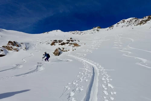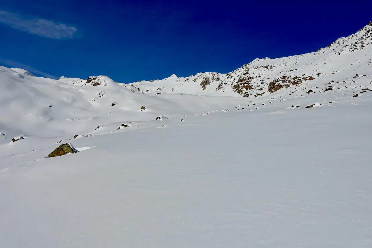 Bei frischen Temperaturen durch das Val Pülschezza in drei Gruppen Richtung Fourun da Pülschezza. Der Südosthang vom Piz Sasuret versprach aber doch noch etwas mehr Spass und Abfahrtsgenuss. Herzlichen Dank an Sebastian und Lars für das Führen der beiden Gruppen und an die Teilnehmer Antonia, Barbara, Claudia, Corinne, Harvey, Karin, Margrith und Sylvia.