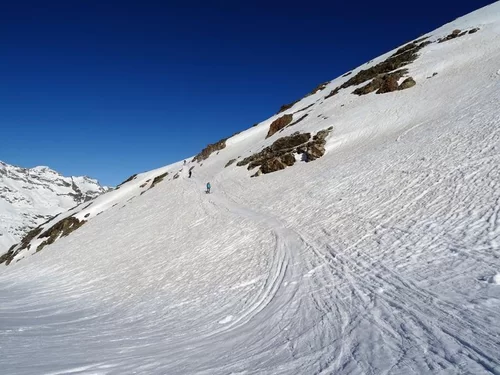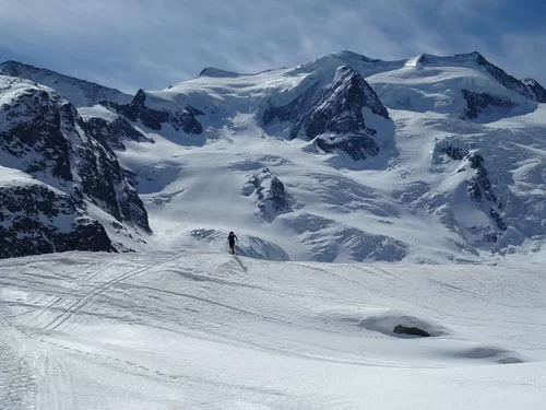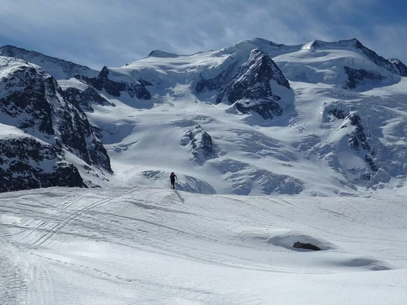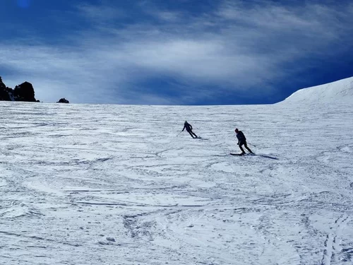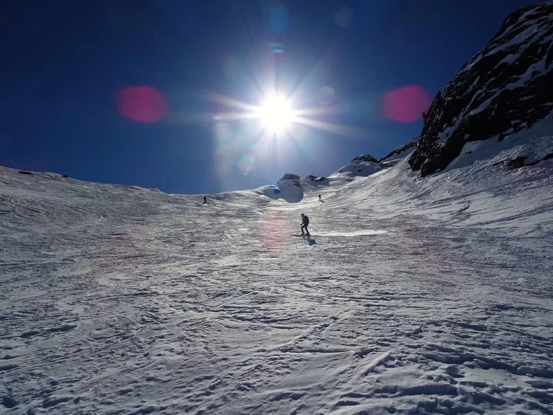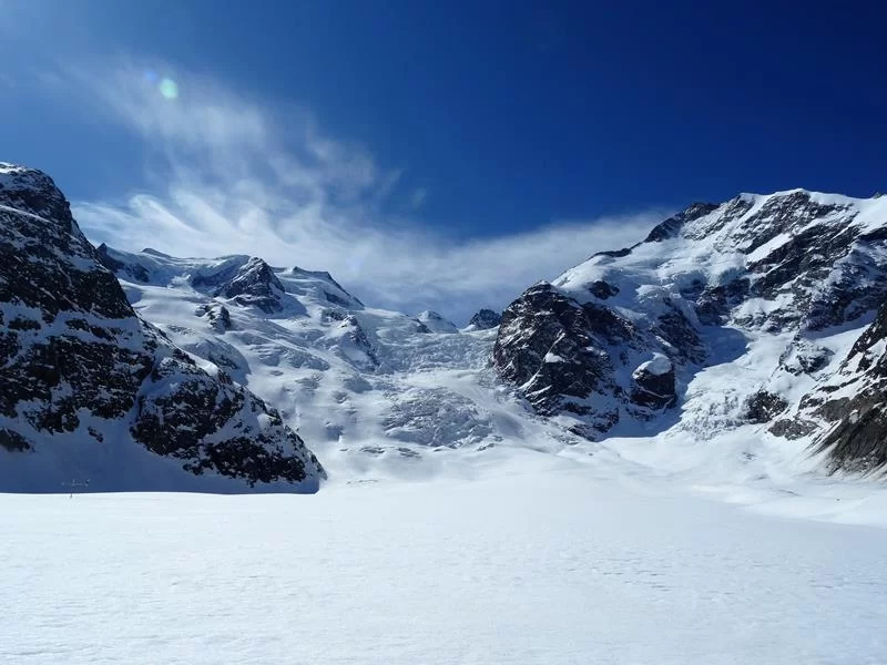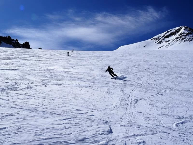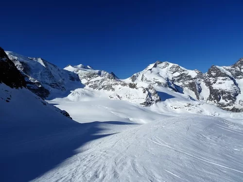 Wegen einer warmen Nacht haben wir uns beim Parkplatz Diavolezza getroffen. Statt auf den Piz Sarsurett gings zur Gemsfreiheit. Nach einem kurzen Aufstieg haben wir die Gemsfreiheit bei schönstem Wetter erreicht. Gegen Norden abfahrend erreichten wir den Vadret da Morteratsch und beschlossen, bei Röbi auf der Chamanna Boval einen kurzen Besuch zu machen. Von dort ging es auf der weniger stark frequentierten Seite des Gletschers hinab zur Gletscherzunge. Eine Besichtigung der Gletscherhöhle schloss die Tour dann ab. Danke an Mirjam, Espen und Kirtsen. TL Bernd