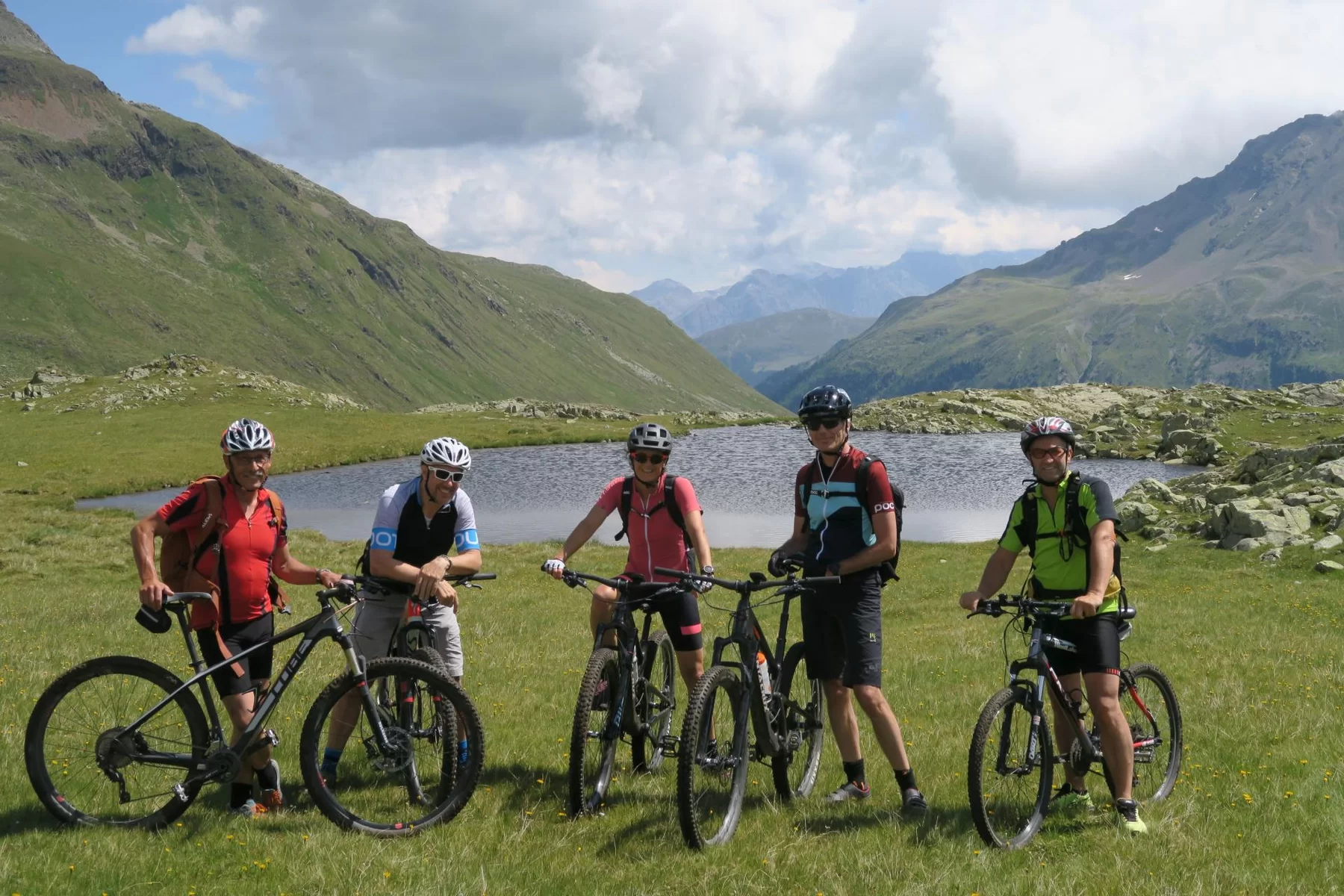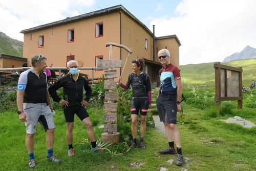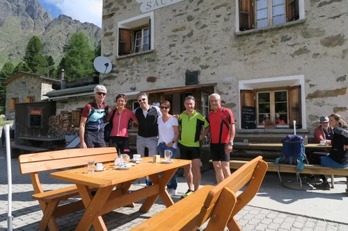 Die kleine Gruppe traf sich pünktlich um 09:30 Uhr beim PP in Sfazù. Marco hatte zu dieser Zeit bereits 600 Hm in den Beinen, da er in Poschiavo gestartet war. Gemütlich ging es dann in Richtung Rifugio Saoseo. Bei Chatrina und Gigi gab es der 1. Kaffee. Über Alpe Campo und Viola See erreichten wir kurz vor Mittag den Viola Pass. Nach einer ruppigen, jedoch schönen Abfahrt erreichten wir die Polentahütte pünktlich für das Mittagessen. Nach dem Mittagessen und mit vollem Magen, nahmen wir die Bergfahrt in Richtung Grenze unter die Räder. Keine einfache Angelegenheit. Ab dort ging es nur noch abwärts. Bei Chatrina und Gigi gab es Kuchen und etwas Flüssiges, bevor in Richtung Sfazù weiterging. Danke Chatina und Gigi für die Gastfreundschaft und Danke den Teilnehmer für den schönen Tag.
