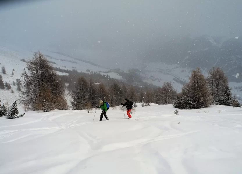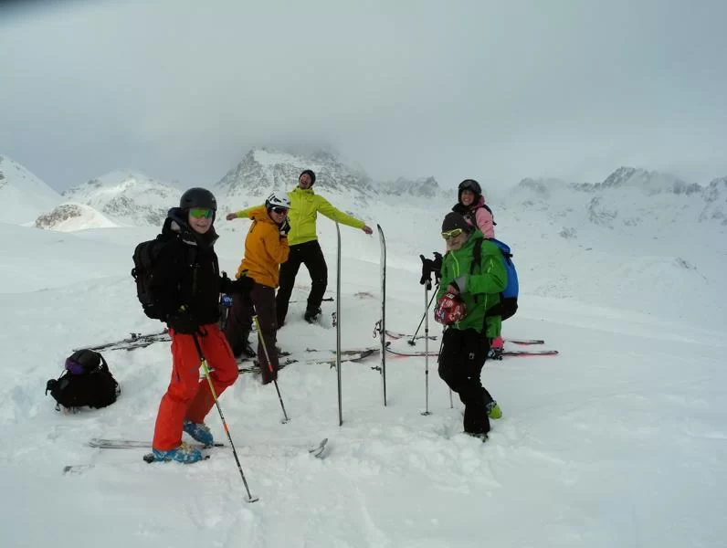 Die Wetteraussichten waren nicht besonders toll, und in solchen Fällen greift man gerne auf den guten Muntisché zurück - eine gute Wahl, wie sich überraschenderweise herausstellte. Schneegestöber, blaue Lücken am Himmel, Sonne, keine Sicht bis sehr gute Sicht - von allem war etwas dabei. V.a. der frisch gefallene Schnee machte die Abfahrt zu einem schönen Erlebnis, teilweise unverspurte Pulverhänge oben und eine gut passierbare Waldabfahrt, sowie nochmals Pulverschnee bis zum Schluss. Danke an die motivierten Teilnehmer Jaqueline, Jean, Susi, Agostino und Francesca und gute Besserung denen, die krankheitshalber zu Hause bleiben mussten. Gruss. Kirsten