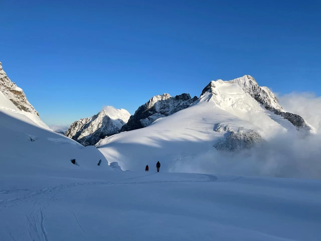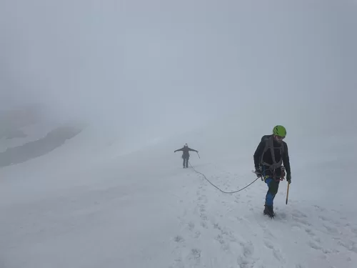 Am Samstag über die Fortezza zur Marco e Rosa Hütte aufgestiegen. Am Sonntag auf Grund der Schenn- und Sichtverhältnisse die Palüüberschreitung von W nach O zurück zur Diavolezza.