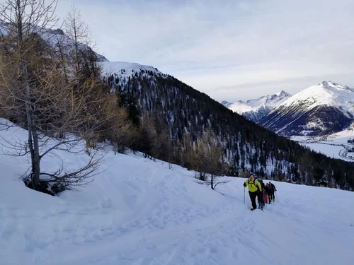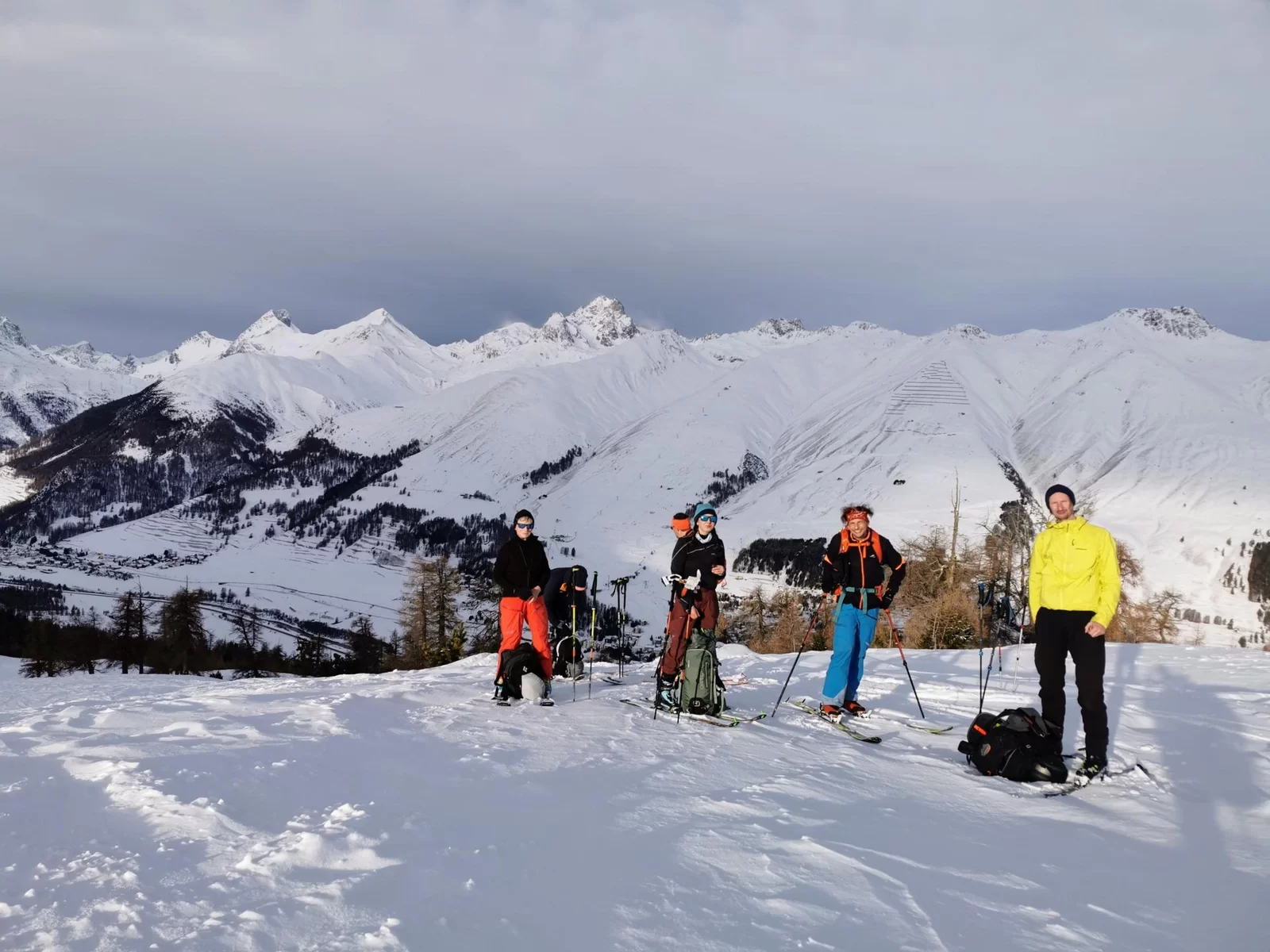 Die Wetterprognose für den heutigen Tag war ja doch eher luftig und wenig sonnig. Daher starteten wir um 8 Uhr von Zuoz, konkret La Resgia, auf den Piz Arpiglia. So hätten wir bei Schlechtwetter in kurzer Zeit zurück in die "Zivilisation" kommen können - brauchten wir aber nicht. Das fest eingeplante Schönwetterfenster haben wir optimal getroffen. Dank guter Sicht und ordentlicher Schneequalität waren wir nach Gipfelerfolg und Abfahrt noch vor dem Mittag zurück bei Café und Kaltgetränken. Herzlichen Dank für die gute Zeit: Jacqueline, Jean, Marco, Martin, Stefan und Susi. Sonnige Grüsse - Sebastian