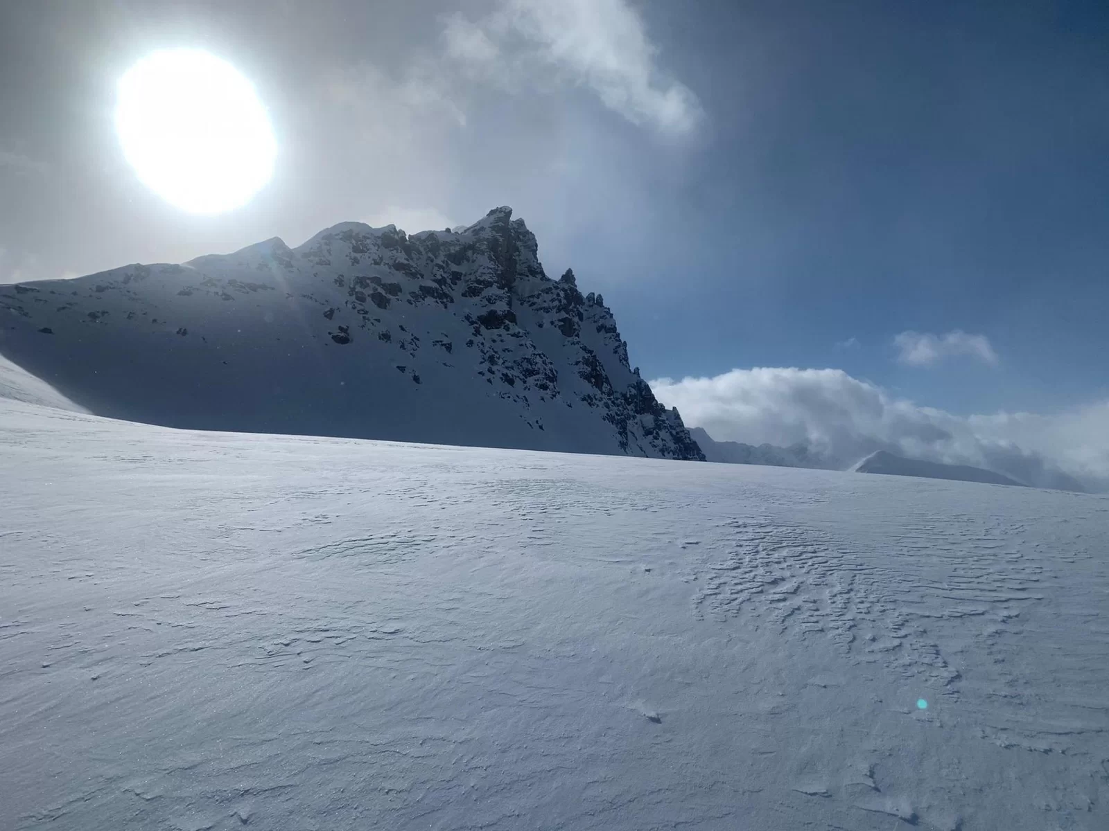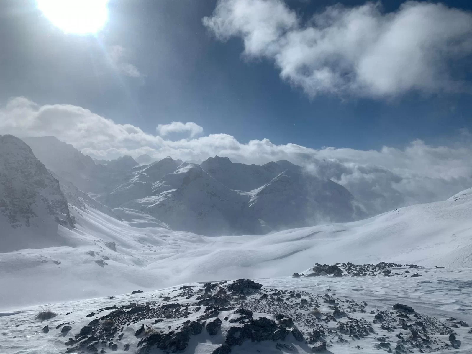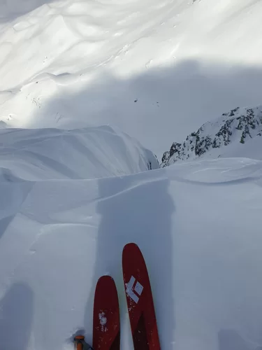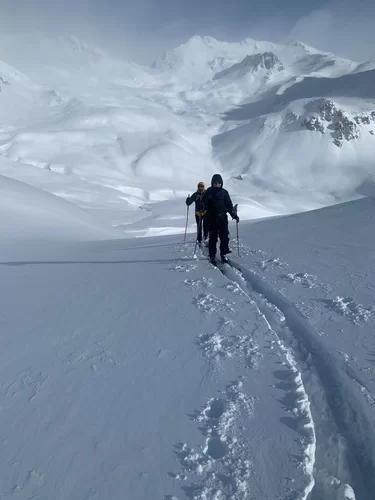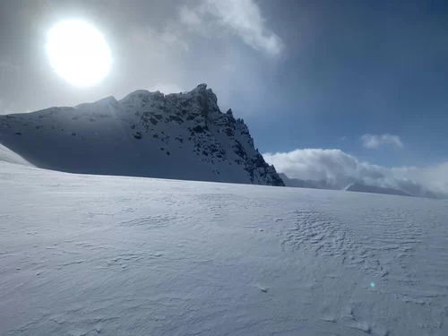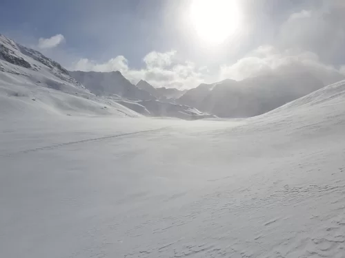 Das stürmische Wetter und der Neuschnee von gestern hat uns geleitet. Es war sehr kalt mit diesem Gegenwind im Aufstieg. Bei der Fuorcla digl Leget war zu entscheiden nach links zum ausgeschriebenen Tourenziel Crappa da Tocf oder über den Punkt 2751m (Steinmann) und dann weiter zum Piz Campagnung. Der TL entschied sich für den Piz Campagnung. Es hat sich gelohnt! Der Gipfelhang war ein Traum von Pulverschnee und auch die übrige Abfahrt war genial. Die Sicht wurde dann immer schlechtet und wir waren froh und glücklich, dass wir wieder beim Parkplatz am Julierpass standen. Es ging heute auf und die Gruppe war stimmig. Dank an Espen, Alexandra und Rica fürs mitkommen. Es hat Spass gemacht. Auf ein Andermal, David.