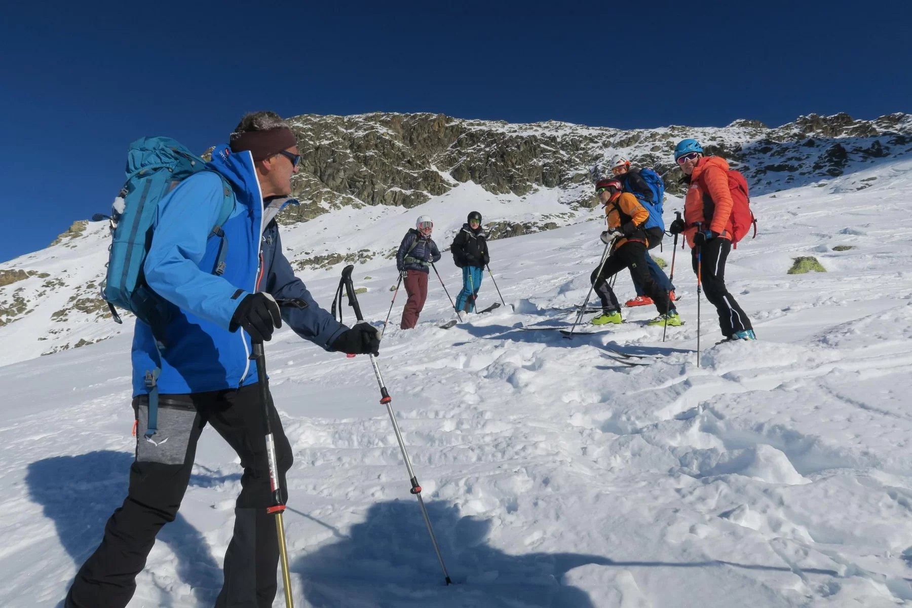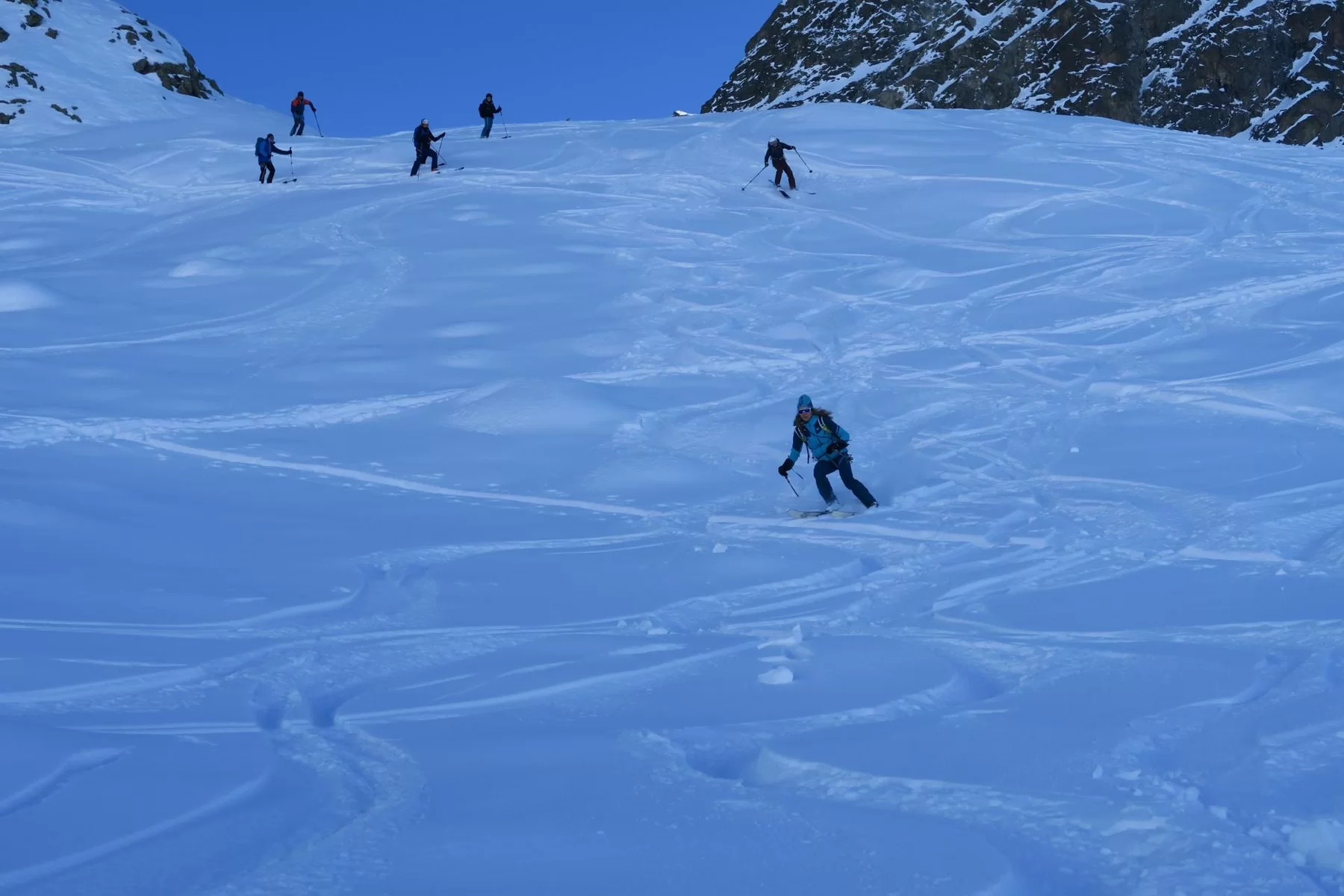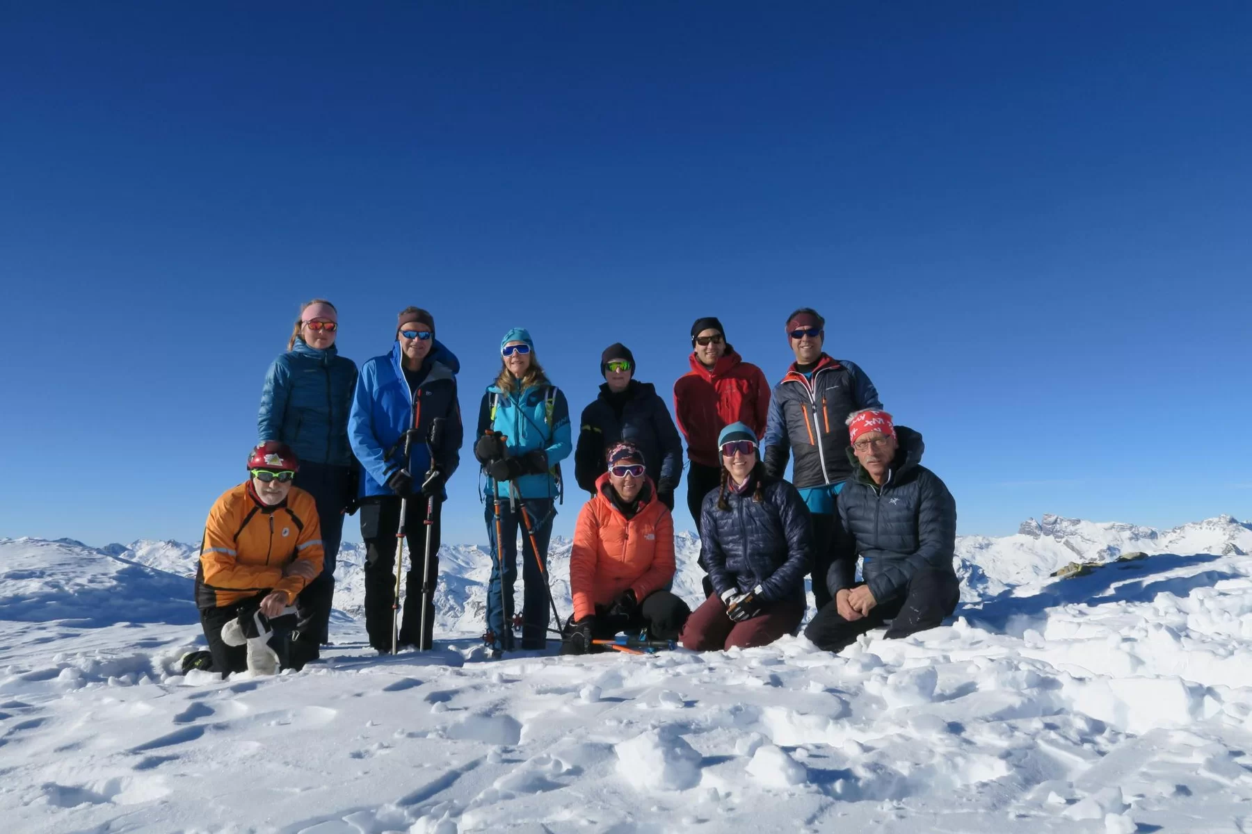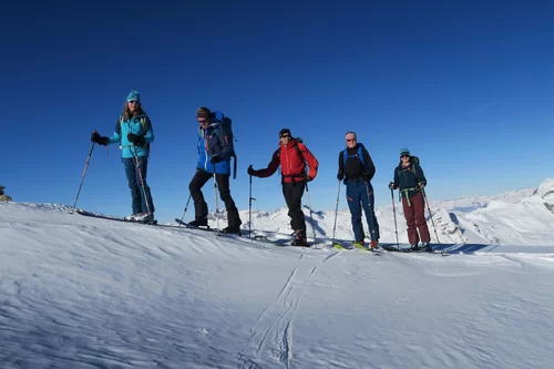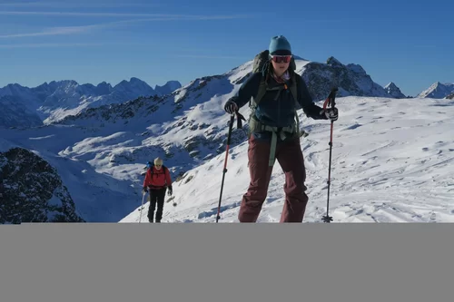 Die heutige Skitour führte zum Piz da las Coluonnas, mit Start bei La Veduta. Auf dem Gipfel genossen die Teilnehmer, nach dem Aufstieg im Schatten, eine wunderschöne Sicht mit Blick zur Berninagruppe, Piz Platta, Piz Forbesch, etc. Die Abfahrt hätte schlechter sein können. Im oberen Bereich eher hart und verfahren, weiter unten teils noch Pulver. Wünsche den Teilnehmerinnen und Teilnehmer eine schöne und unfallfrei Tourensaison. An der heutigen Tour nahmen Jacqueline, Julia, Patrizia, Chatrina, Susi, Giorgio, Lucas, Günther und Agostino teil. Den SAC Mitgliedern, Kolleginnen und Kollegen schöne Festtage und bis bald. Gruss Ezio