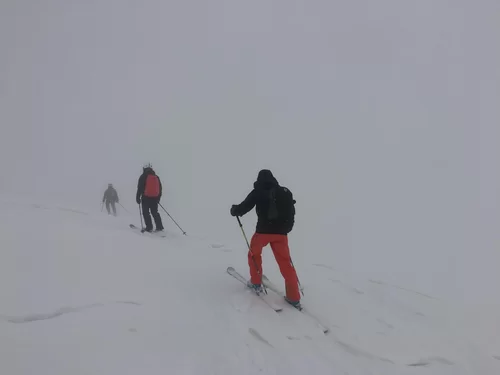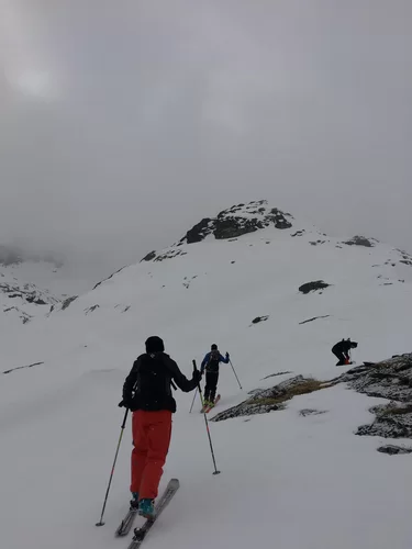 Um 9 Uhr starteten Julia, Susi, Emilio und TL David vom Rest. Veduta am Julierpass. Es waren verschiedene Skitourengruppen unterwegs. Die Sicht war schlecht und daher neblig. Am Plateau angekommen vor dem Lej Grevasalvas. Wir fellten ab und machten eine kurze Abfahrt zum Lej hinunter um weiter nach Westen zum ersten Steilhang zu fellen. Der Steilhang mussten wir kurz zu Fuss überwinden. Den langen Bergrücken empor zu höchsten Punkt. Das Wetter wurde immer besser. Zuerst eher blinde Bergabfahrt und dann durch Schluchten und Mulden, bei guter Sicht, über Nordhänge Richtung Julierpassstrasse. Teilweise noch Pulverschnee, das war cool. Kurzer gegenaufstieg direkt zum Veduta PP. Danke der SAC-TN für den kameradschaftlichen Tag! Bis zum nächsten Mal euer TL David.