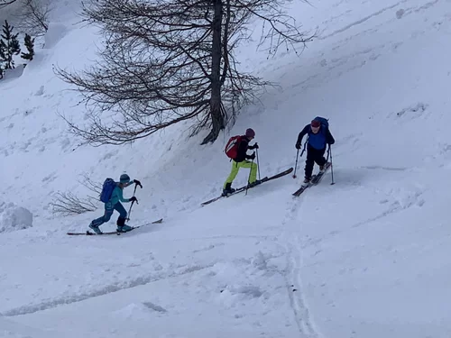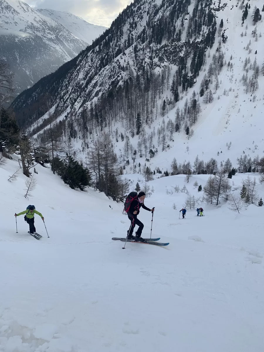 Um 7 Uhr starteten wir vom Parkplatz zwischen Susch und Zernez. Ein langer Aufstieg (1550hm) warteten auf uns. Zuerst gings durch den Wald hinauf zur Alp Sarsura. Von dort steil hinauf ins Val Sarsura, wo uns auch die ersten Sonnenstrahlen begegneten. Danach wurde es wieder etwas flacher. Leider kam dann der Nebel und wir sahen nicht mehr viel. Dank einer bereits vorhandenen Aufstiegsspur, fanden wir den Gipfel. Vom Skidepot aus gingen wir die letzten paar Meter zu Fuss. Auf der Abfahrt sahen wir dann die Sonne glücklicherweise wieder. Danke an unseren Tourenleiter Rainer. Gruppe 1 (Dorette und Mirjam), Gruppe 2 (Antonia, Margrith und Hans-Ruedi)