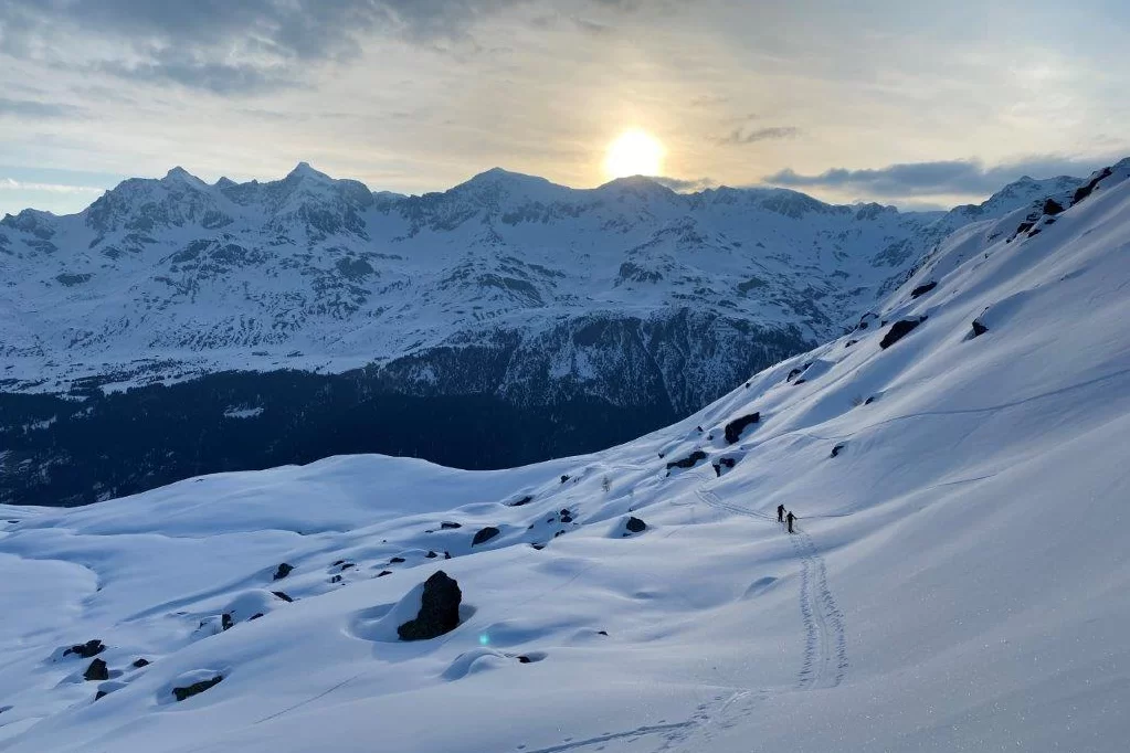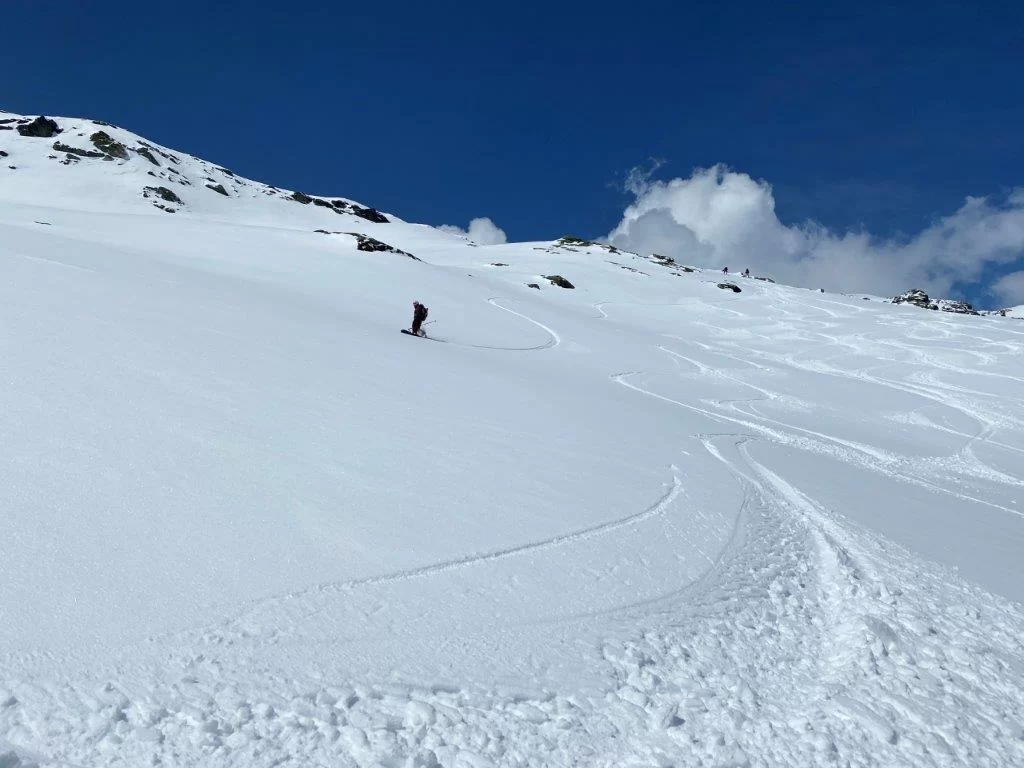 Und wiederum durften wir eine Supertour bei sehr guten Bedingungen durchführen Wir wählten die Route vom Marmorera Staudamm aus. Im Anstieg zum Übergang sahen wir zuerst ein paar Gemsen und dann plötzlich bewegte sich fast der ganze Hang, sicherlich 50-60 Gemsen die fohlen. Auf dem Gipfel zog zwischenzeitlich der Nebel ziemlich dicht auf, zum Glück verzog er sich dann wieder. Meistens Firn mit leichtem Schneeflaum. Nur auf einem kurzen Stück brauchten wir die Harscheisen. Ansonsten war schon eine gute Spur angelegt. Die Gipfelrinne hatte ebenfalls guten Trittschnee. Auf der Abfahrt fanden wir im oberen Teil auch noch Pulverschnee. Im Mittelteil wechselten wir auf die Sonnenseite, dort hatte es Sulz. Da wir die Info bekamen, es habe Schnee auf dem Weg bis Mulens. Traversierten wir auf dem Sommerweg immer schön fahrend bis Tga, auf tragendem Firn. Anschliessend runter auf der Fahrstrasse, da war der Schnee dann doch eher weich und feucht. TL Norbert