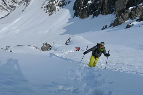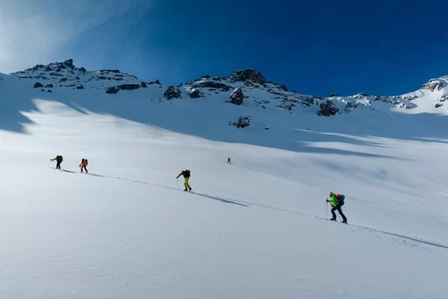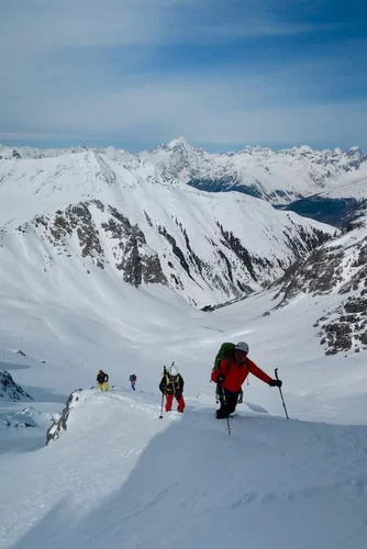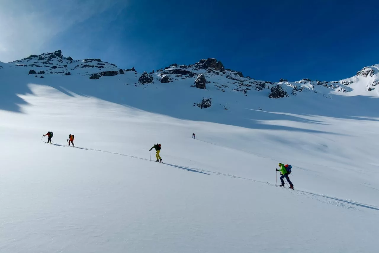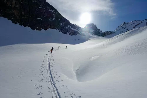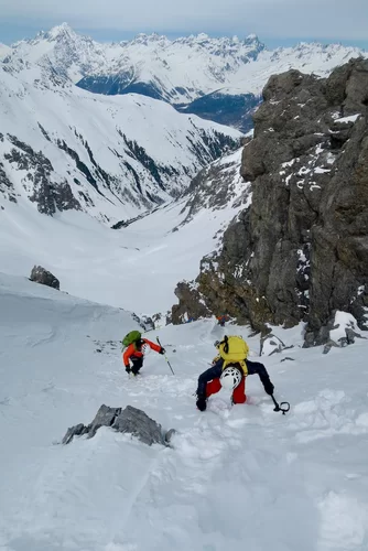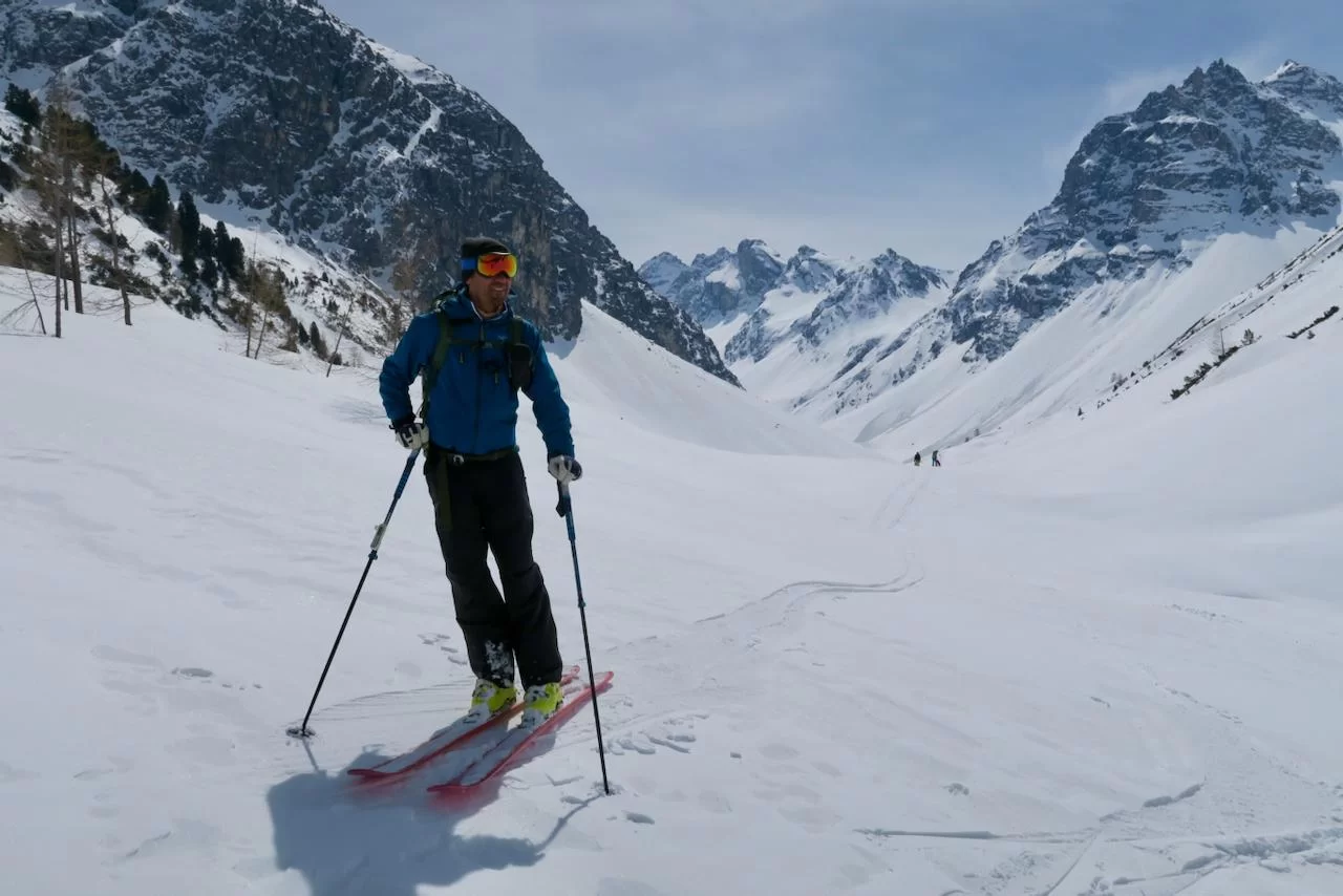 Die Wetteraussichten für das Fornowochenende waren leider nicht hoffnungsvoll, so haben wir uns kurzer Hand entschieden am Freitag und Samstag Touren vom Tal aus zu unternehmen. Es zog uns mal wieder in die einsamen Gefilde der habsburgischen Grafschaft zu Tarasp. Aufstieg im Val Sampuoir und weiter via Val dal Botsch zum Piz Plattas. Der Aufstieg zum Gipfel war spannend und anstrengend und wurde mit einer perfekten Abfahrt mit leichtem Neuschnee und Sulz gekrönt. Besten Dank per la bella cumpagnia und den tollen Teamgeist an Claudia, Graziano, Marco, Sebastian. Vielleicht wird es ja im nächsten Jahr mit dem Val Forno TL Ezio und Bert