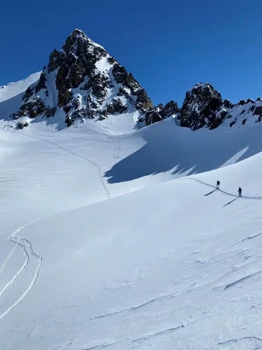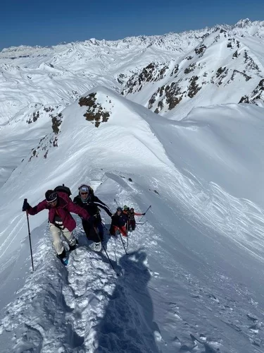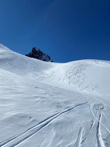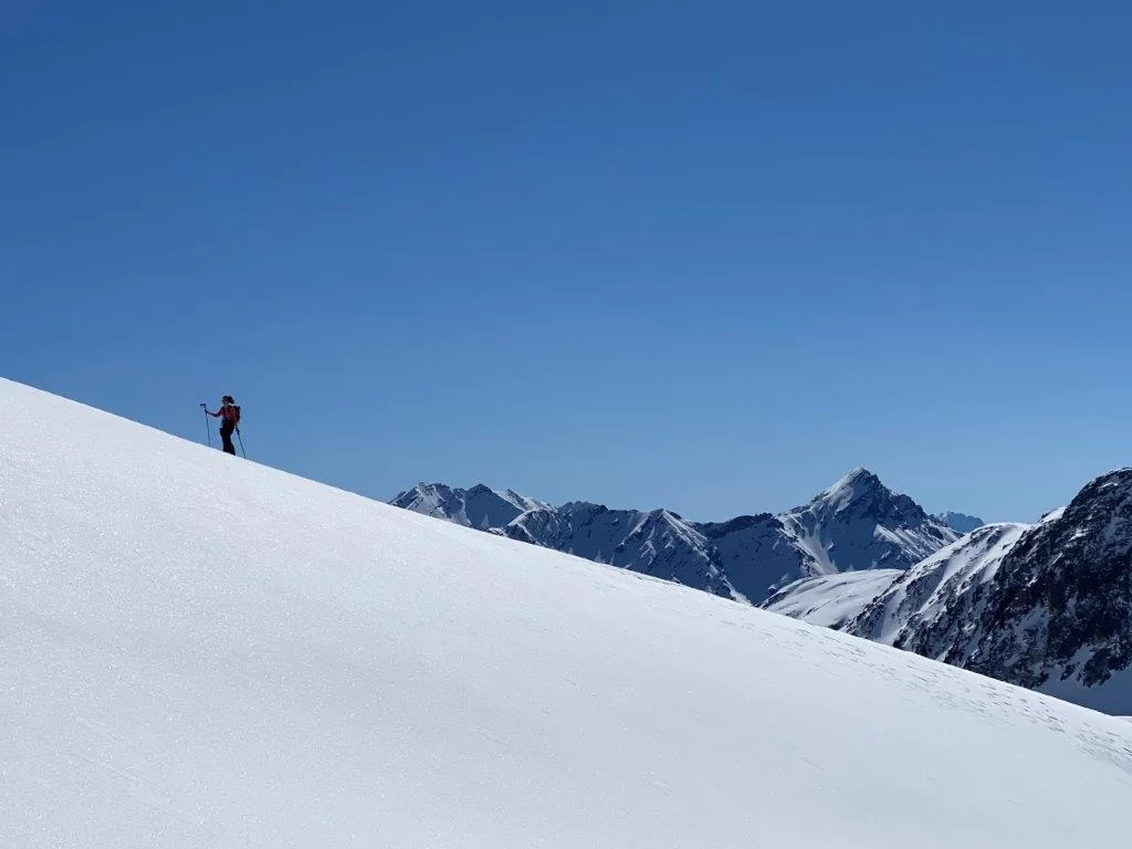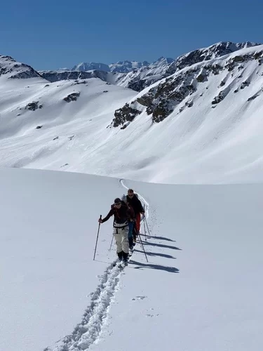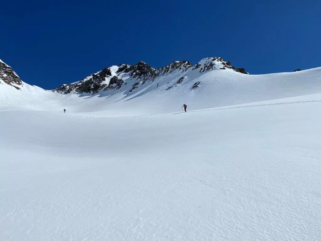 Der Aufstieg durch das lange Val Barlas-ch gingen wir eher gemütlich an sodass wir miteinander nach gut 2.00 die erste Rast verdienten. Weiter gingen wir in grossen ausholenden Bogen weiter und bezwangen die Fuorlca Barlas-ch mit 2 Spitzekehren. Auf dem Sattel machten wir Skidepot und stiegen zu Fuss zum Gipfel hinauf. Die Abfahrt über den Gletscher und durch das Val Sarsura hinab nach Crastatscha war einfach sensationell. Wir hatten wieder einen wunderbaren Tag erwischt. Im Aufstieg kamen wir richtig ins schwitzen, Auch oben auf dem Gipfel konnten wir das Panorama und die Sonne in vollen Zügen ohne das geringste Lüftchen geniessen TL Norbert