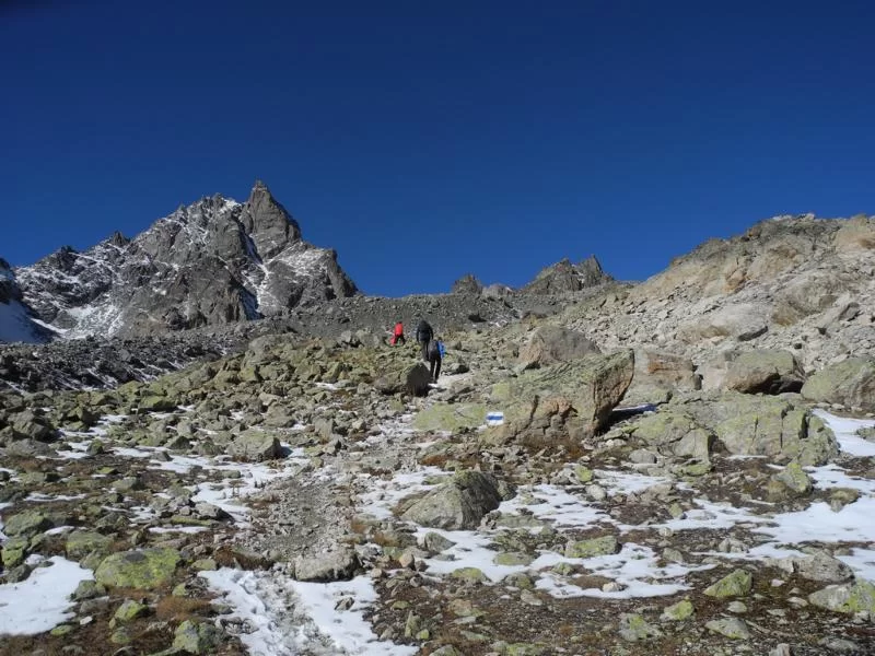 Dem Aufruf zur Mithilfe sind 9 Mitglieder gefolgt, 2 mussten krankheitshalber im Tal bleiben, was sicher die schlechtere Option war. Gute Besserung! Die anderen konnten einen frischen Morgen mit bald wärmenden Sonnenstrahlen, immer lustigen Sprüchen, Technik-Training im Steine umlagern und einem schönen Resultat geniessen. Weil's so schön war, sind wir nach getaner Arbeit noch in Richtung Porta d'Es-cha aufgestiegen.