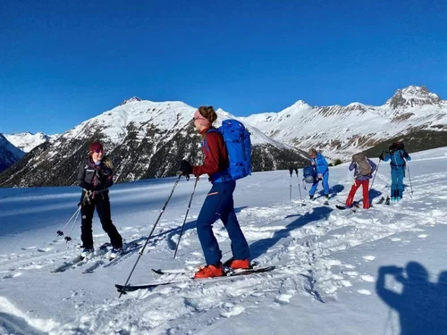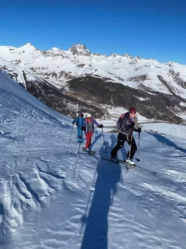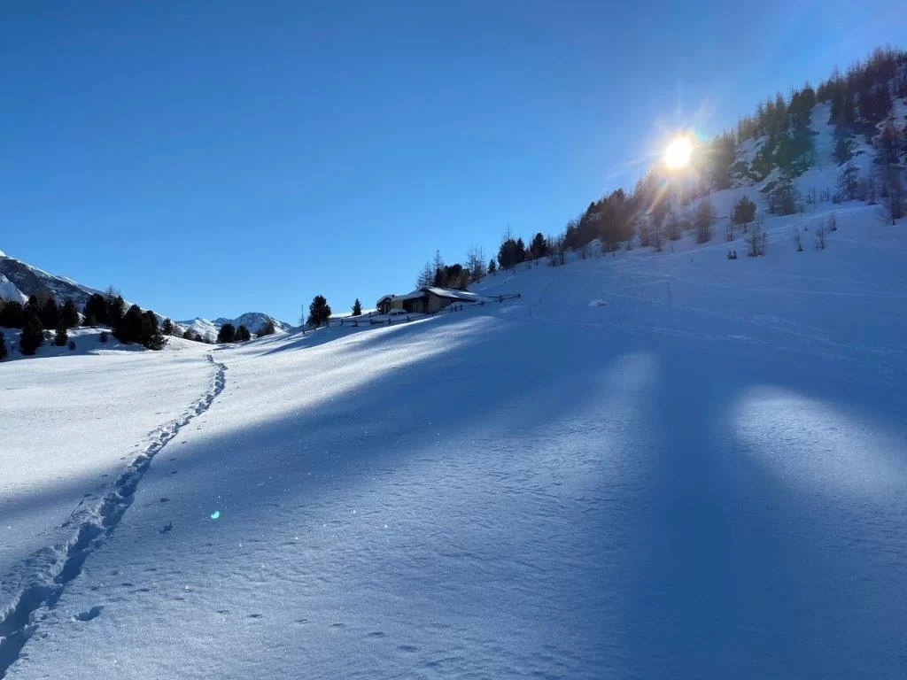 Obwohl der nahe Nordhang vom Piz Utèr lockte, verzichteten wir gemeinsam auf die Variante. So nahmen wir die Abfahrt in Angriff, mit etwas Suchen, fanden wir immer wieder schöne Passagen mit leichtem, unverspurten Pulverschnee. Da wir zeitlich früh zurück waren, konnten wir die Tour noch bei einem heissen Punch auf der Sonnenterrasse ausklingen lassen.
