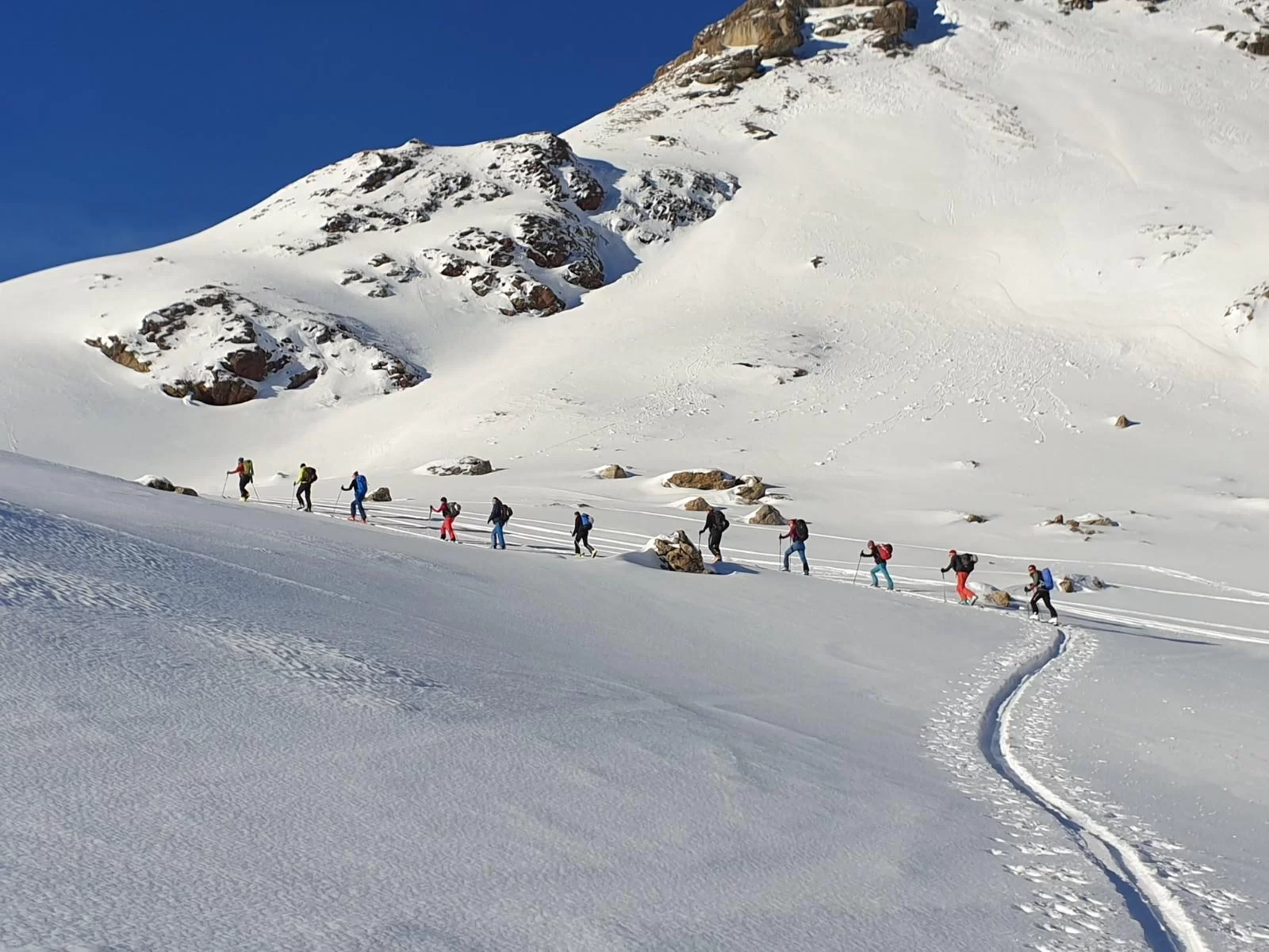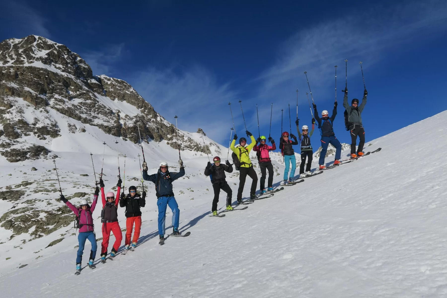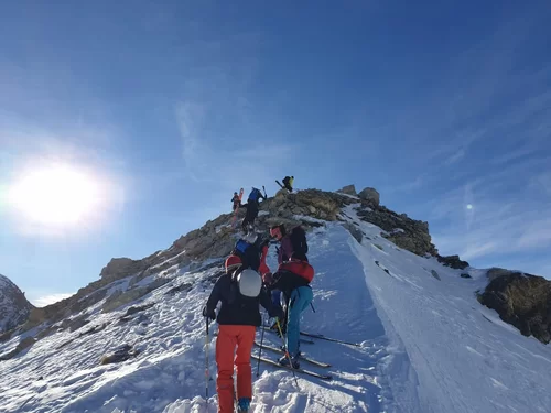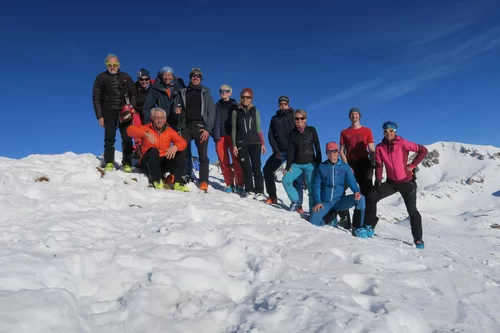 Die Neujahrestour führte zum Muot Cotschen auf 2863 müM. Die homogene und sympatische Gruppe hat einen schönen Tag fern von der Zivilisation genossen und das neue Jahr mit einem frischen Glas Champagner am Gipfel gefeiert. Die frühlingshafte Temperatur liessen uns bereits die ersten Firnabfahrten geniessen. An der heutigen Tour nahmen, Antonia, Susi, Karin, Julia, Margrith, Caroline, Agostino, Rolf, Jean, Laurent und die beiden TL Kirsten und Ezio. Besten Dank an Kirsten für die Unterstützung. Der Sektion Bernina, dem Vorstand, den TL und den Mitgliedern wünsche ich einen schönen und erfolgreichen 2022