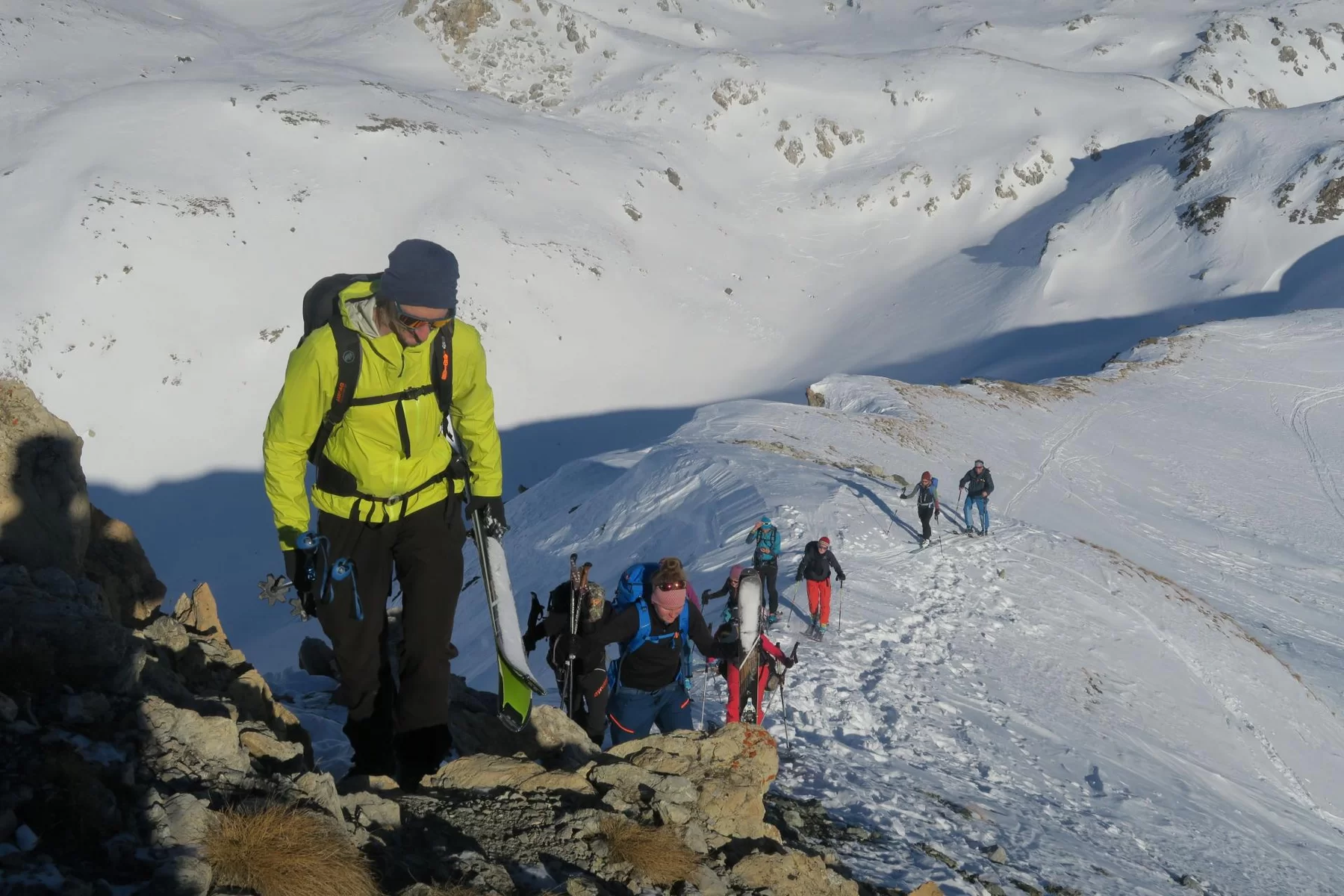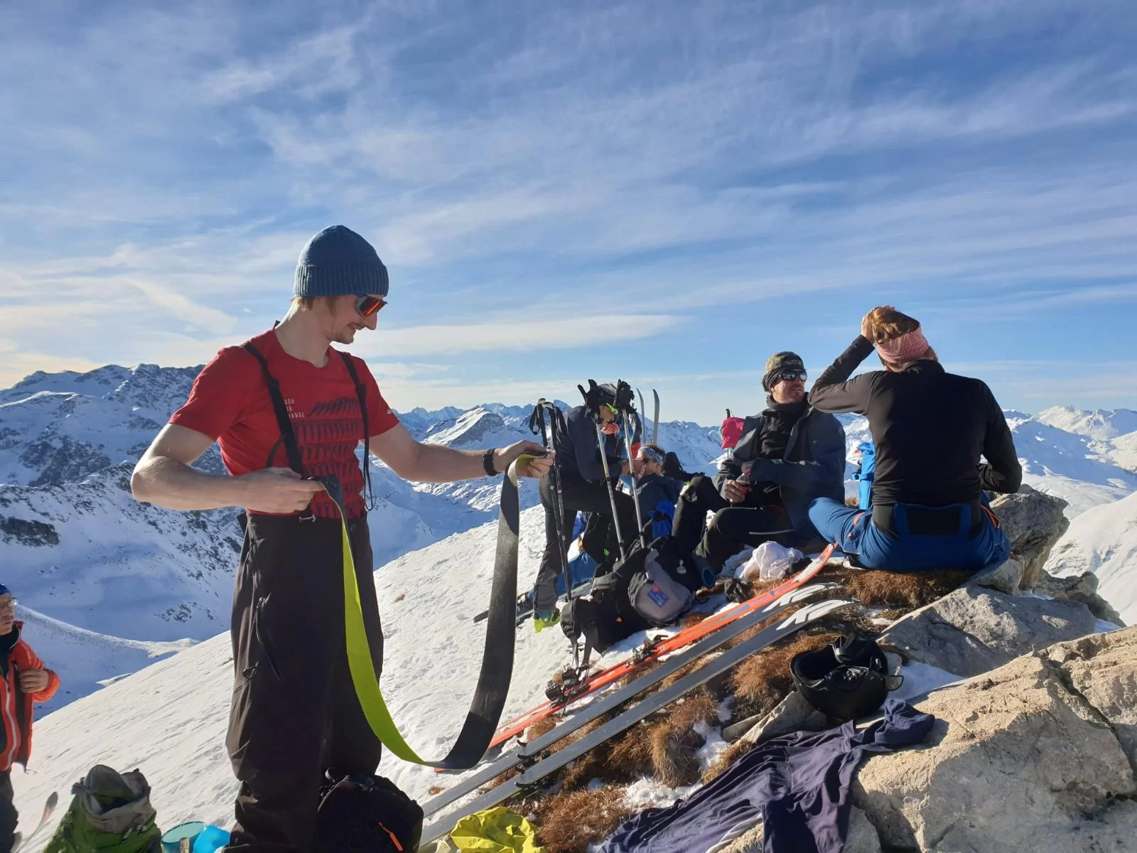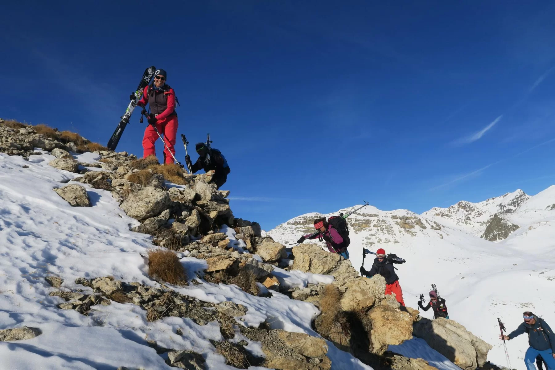Die Neujahrestour führte zum Muot Cotschen auf 2863 müM. Die homogene und sympatische Gruppe hat einen schönen Tag fern von der Zivilisation genossen und das neue Jahr mit einem frischen Glas Champagner am Gipfel gefeiert. Die frühlingshafte Temperatur liessen uns bereits die ersten Firnabfahrten geniessen. An der heutigen Tour nahmen, Antonia, Susi, Karin, Julia, Margrith, Caroline, Agostino, Rolf, Jean, Laurent und die beiden TL Kirsten und Ezio. Besten Dank an Kirsten für die Unterstützung. Der Sektion Bernina, dem Vorstand, den TL und den Mitgliedern wünsche ich einen schönen und erfolgreichen 2022