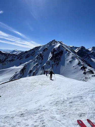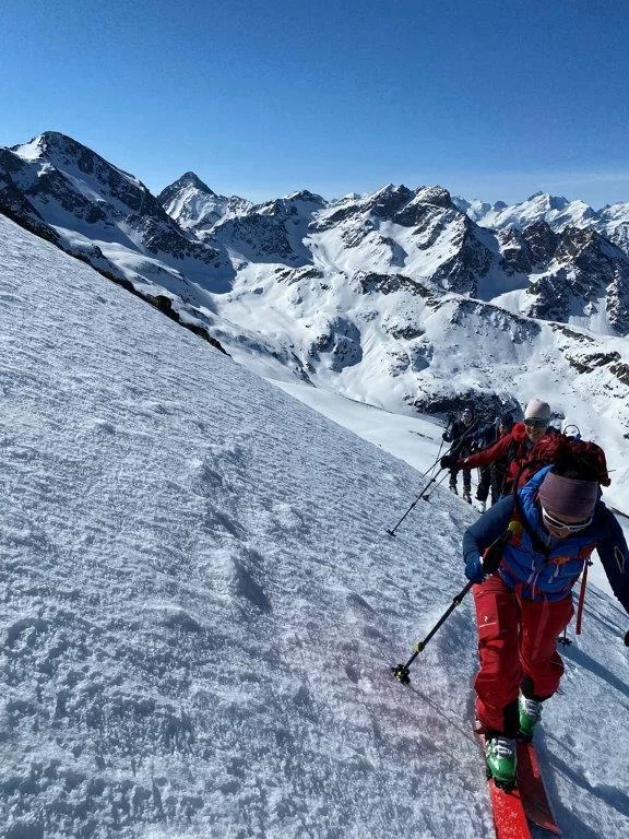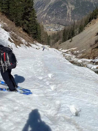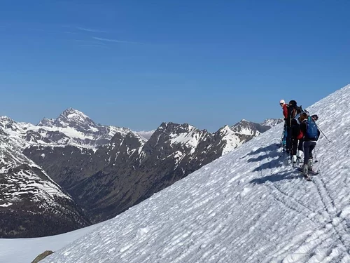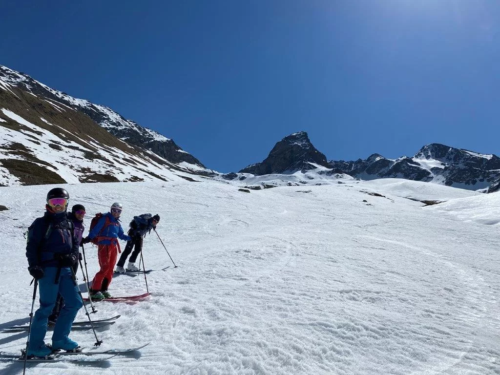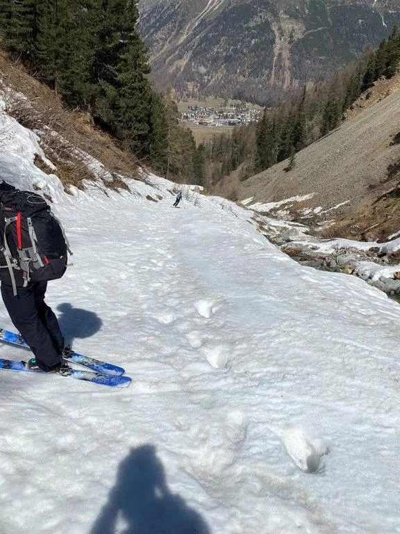 Start beim Parkplat Piste 21. Erstaunlicherweise konnten wir nach kurzem Ski tragen, bis zum oberen Brüggli, die Skis anschnallen und nicht mehr abziehen bis zum Gipfel. Ein bisschen Geschick und Kraft brauchte es um die paar Lawinenausläufer zu überqueren. Ab der Chammana Val Champagna kamen wir schon bald an die Sonne. Da ich als Option noch den Piz Vadret im Auge hatte, studierte ich die Schneeverhältnisse von unterwegs, kam aber zum Schluss, dass wir sinnvoller Weise doch den Piz Utèr anvisierten. Auf die Nordhang-Abfahrt verzichteten wir, weil die Schneeverhältnisse nicht überzeugten. Somit fuhren wir wieder der Aufstiegsspur entlang zurück und trafen herrliche Sulzschnee-Verhältnisse an. Auch der Alpweg bis zum Brüggli hinunter, konnten wir mit Kurzschwüngen befahren.
