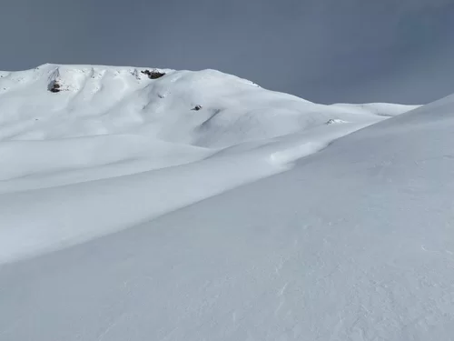 Pulverschnee und darunter eine recht gut verfestigte Altschneedecke, die