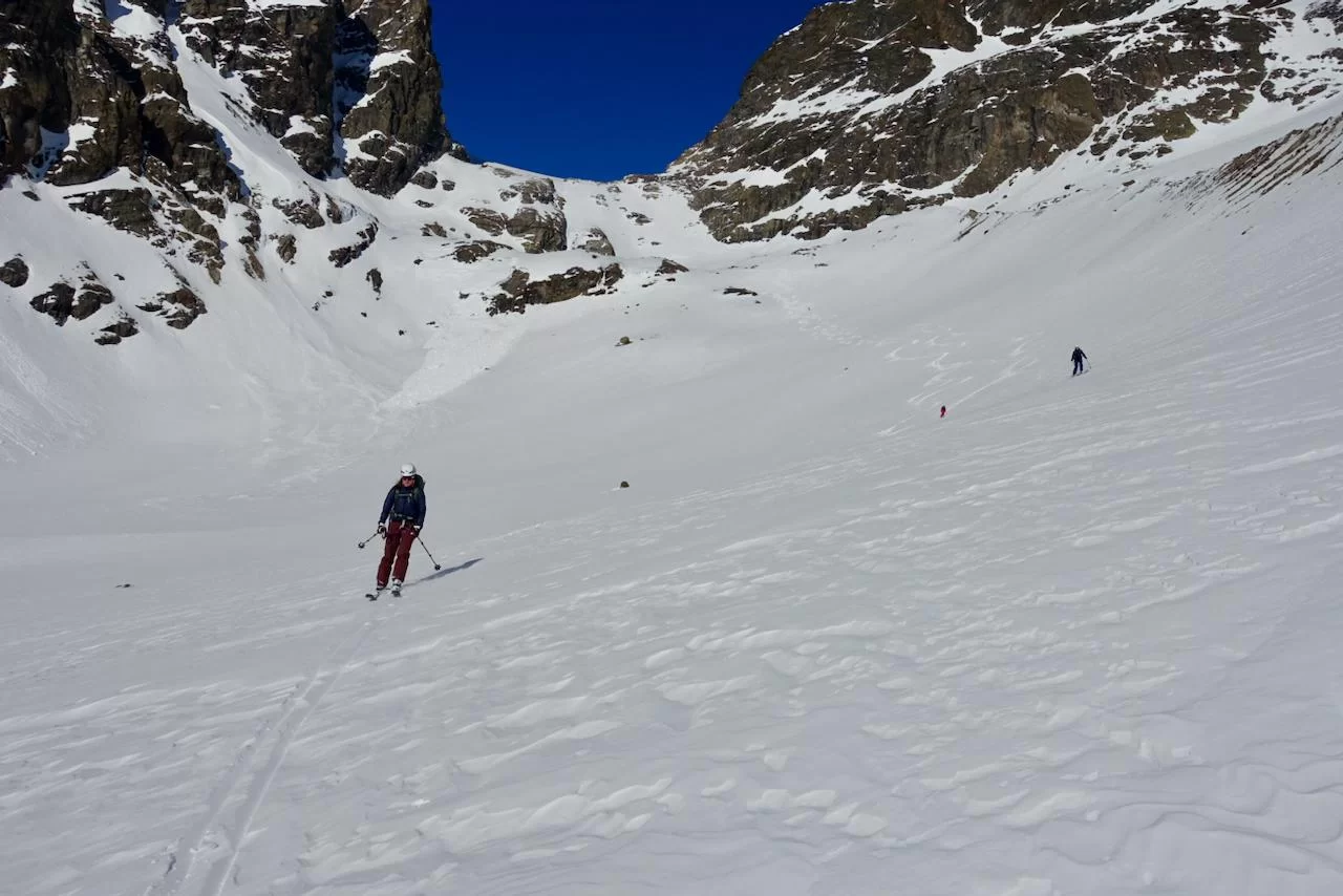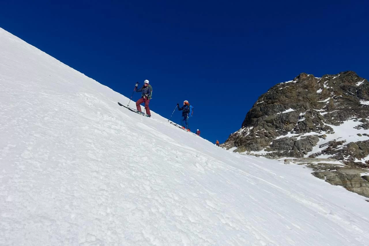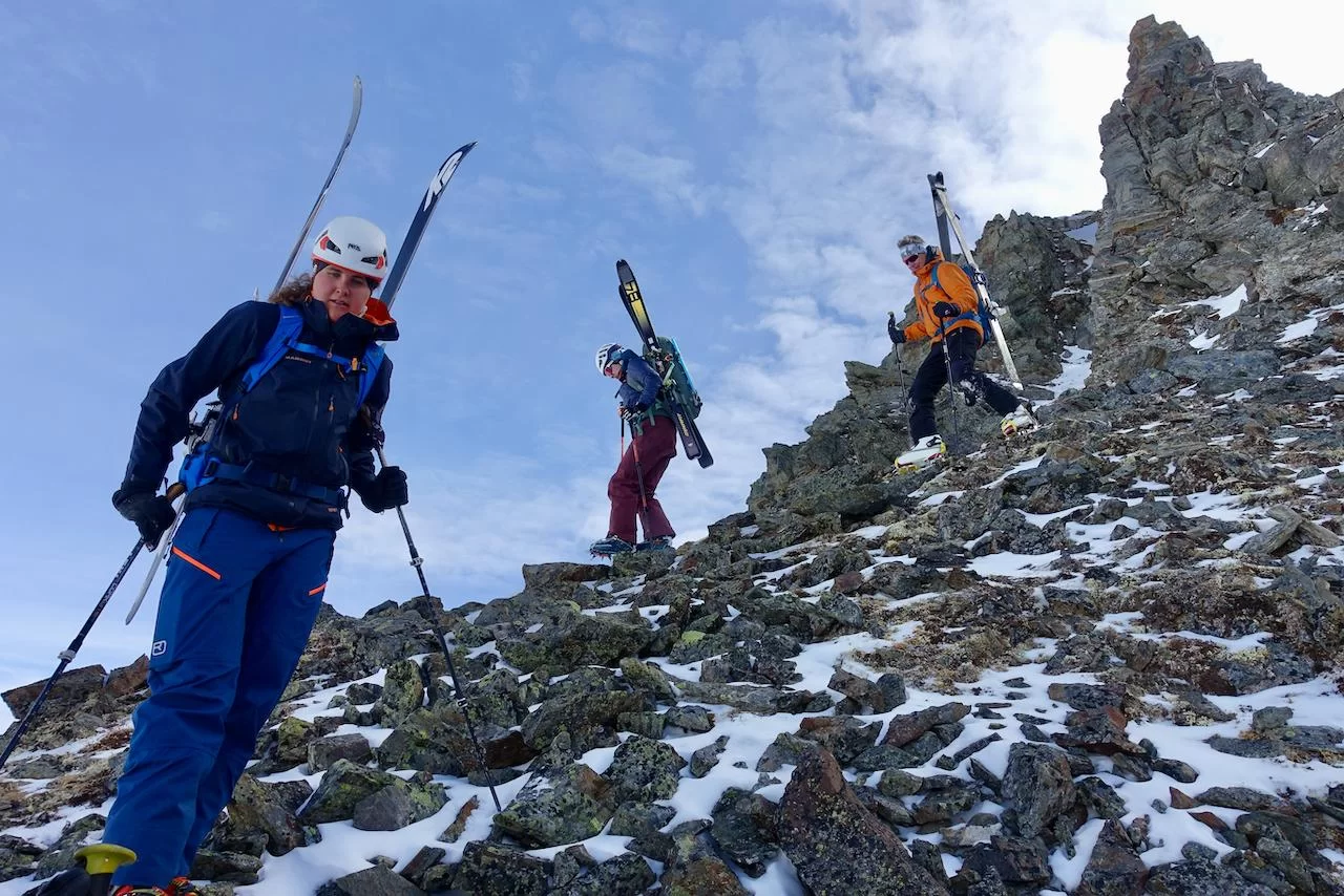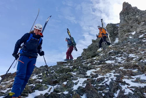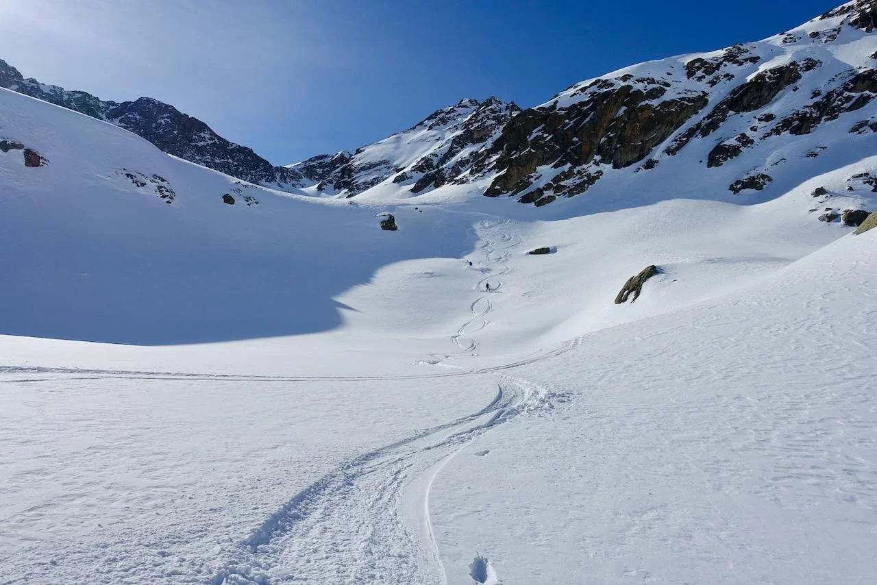 Wetter und Verhältnisse ideal, was will man mehr. Windstill und warm im Aufstieg zum Piz Champatsch am Mittwoch. Gemütlich nahmen wir den Weg zum Gipfel in Angriff und übten uns im steilen Gipfelhang in Spitzkehren. Auf der Nordseite war der Schnee in Gipfelnähe eher Mangelware, so stiegen wir die ersten 60m zu Fuss ab. Danach wurden wir dann umso mehr mit Pulver belohnt. Auch im Couloir runter ins Val Tuoi reichlich und guter Schnee. Abendessen in der Tuoi Hütte wie immer perfekt. Am Donnerstag dann via Plan Rai ins Silvrettagebiet. Signalhorn und Egghorn haben wir ganz alleine gemacht, so schön wenn keine weiteren Tourengänger unterwegs sind. Abfahrt ins Val Lavinuoz und Dank Schlittelbahn bis direkt nach Lavin. Zwei Tourentage in absoluter Einsamkeit. Besten Dank für feine Kameradschaft an Albert, Jacqueline, Julia und Sabine- TL Bert