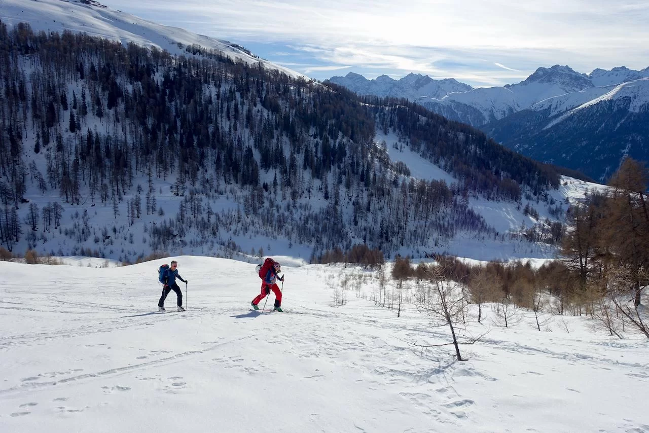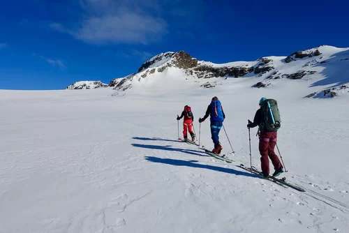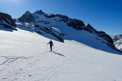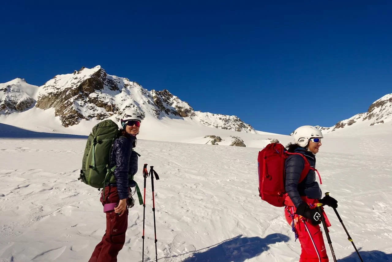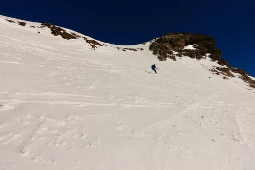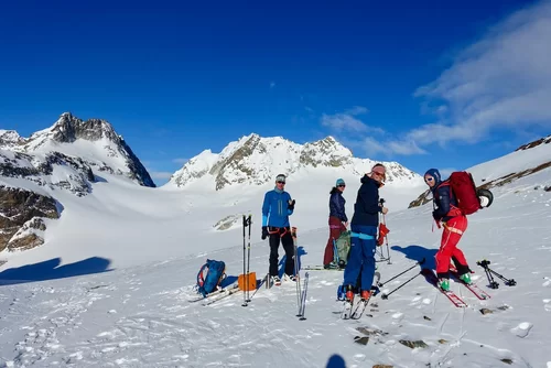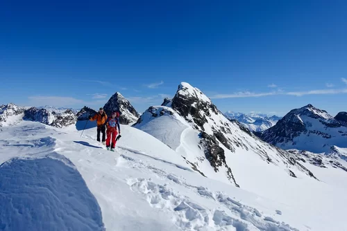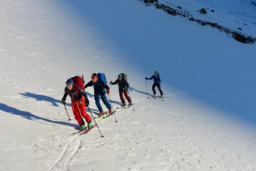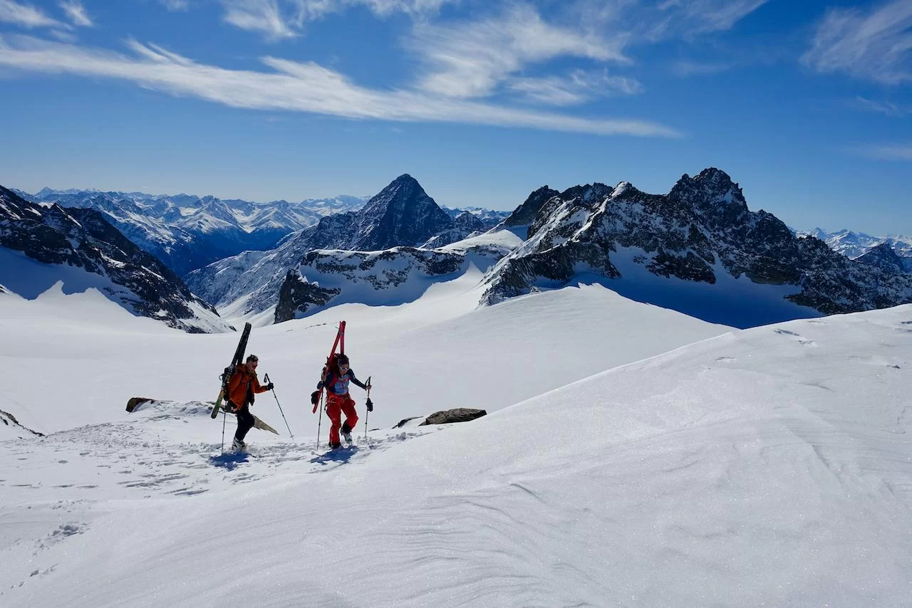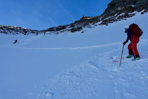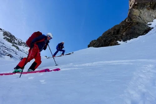 Wetter und Verhältnisse ideal, was will man mehr. Windstill und warm im Aufstieg zum Piz Champatsch am Mittwoch. Gemütlich nahmen wir den Weg zum Gipfel in Angriff und übten uns im steilen Gipfelhang in Spitzkehren. Auf der Nordseite war der Schnee in Gipfelnähe eher Mangelware, so stiegen wir die ersten 60m zu Fuss ab. Danach wurden wir dann umso mehr mit Pulver belohnt. Auch im Couloir runter ins Val Tuoi reichlich und guter Schnee. Abendessen in der Tuoi Hütte wie immer perfekt. Am Donnerstag dann via Plan Rai ins Silvrettagebiet. Signalhorn und Egghorn haben wir ganz alleine gemacht, so schön wenn keine weiteren Tourengänger unterwegs sind. Abfahrt ins Val Lavinuoz und Dank Schlittelbahn bis direkt nach Lavin. Zwei Tourentage in absoluter Einsamkeit. Besten Dank für feine Kameradschaft an Albert, Jacqueline, Julia und Sabine- TL Bert