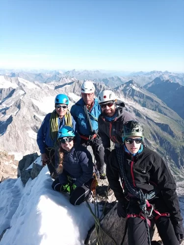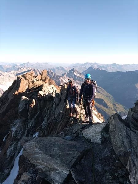 Nach der Anfahrt über Berninapass, Sondrio und Val Masino, starteten wir von Preda Rossa Richtung Rifugio Ponti. Nach einer klaren Nacht starteten wir um 4 Uhr bei Top Verhältnissen Richtung Sella di Pioda. Weiter folgte leichte Gratkletterei, bis wir kurz nach 8 Uhr auf dem Gipfel standen. Nach einer Gipfelrast stiegen wir wieder über den Grat ab und zurück nach Preda Rossa. Vielen Dank an Ezio für die Unterstützung als Tourenleiter.