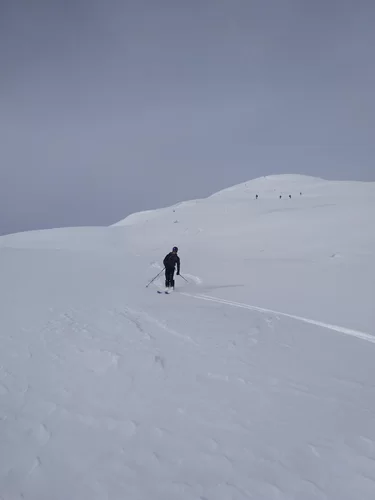 Aufgrund der angeregten Diskussion zur Überlebensstrategie der Schneehühner ging das Gipfelfoto vergessen. Es war eine wunderschöne Skitour mit einer Abfahrt der Extraklasse.