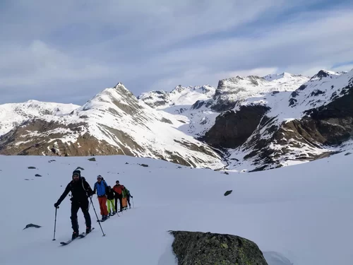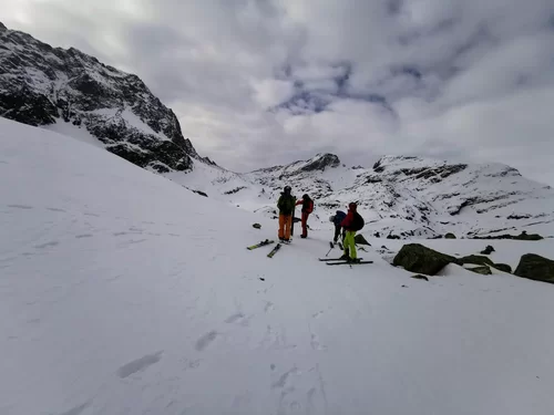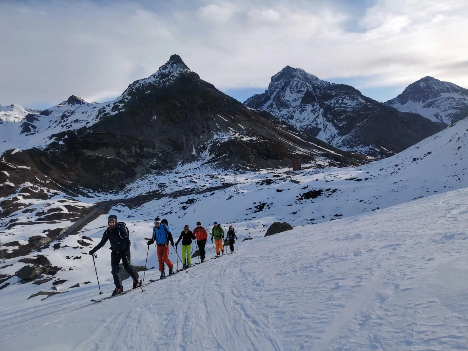 Die Wetterprognose für Karfreitag liess lediglich mit grossem Optimismus auf ein paar Sonnenstrahlen hoffen. Daher verabredeten wir uns zu einer eher kurzen Tour vom Julierpass auf den Piz da las Coluonnas. Um der Wetterfront zuvorzukommen, starteten wir bereits vor 8 Uhr vom Parkplatz des Ospizio La Veduta.