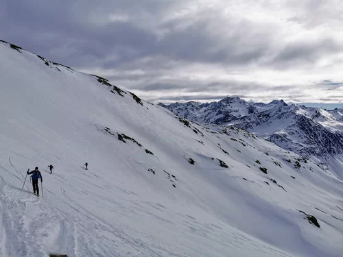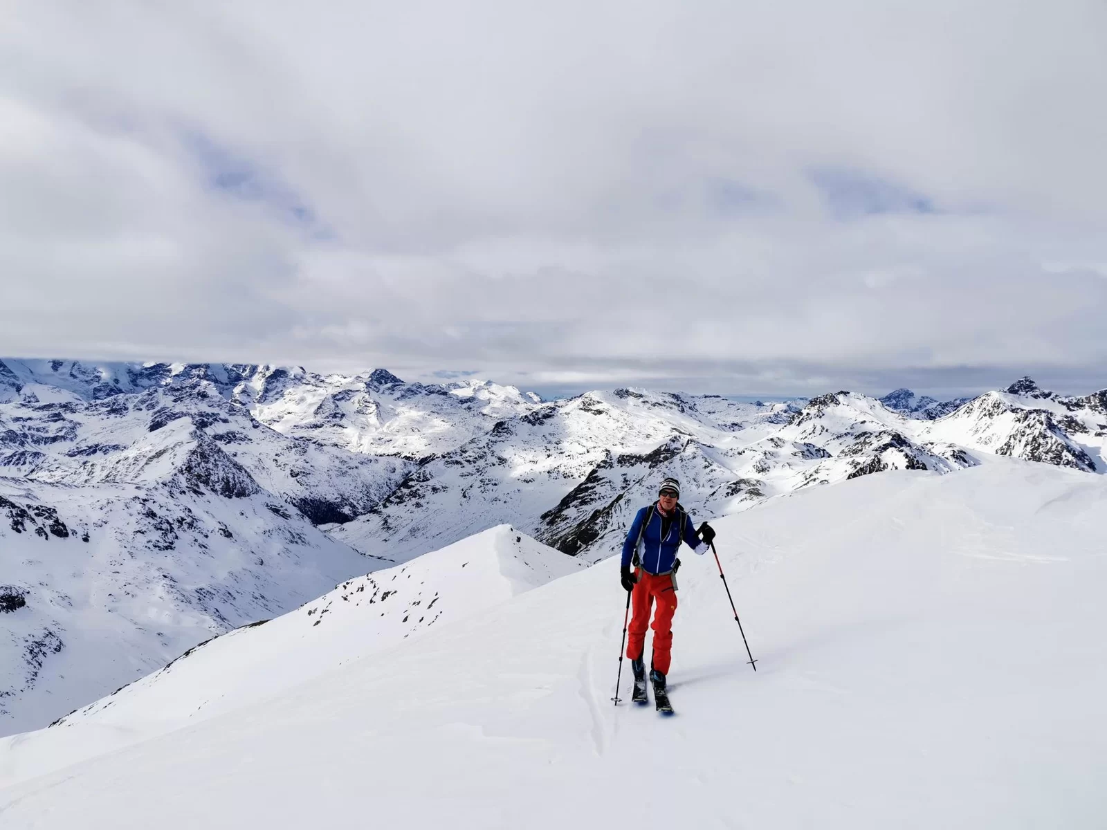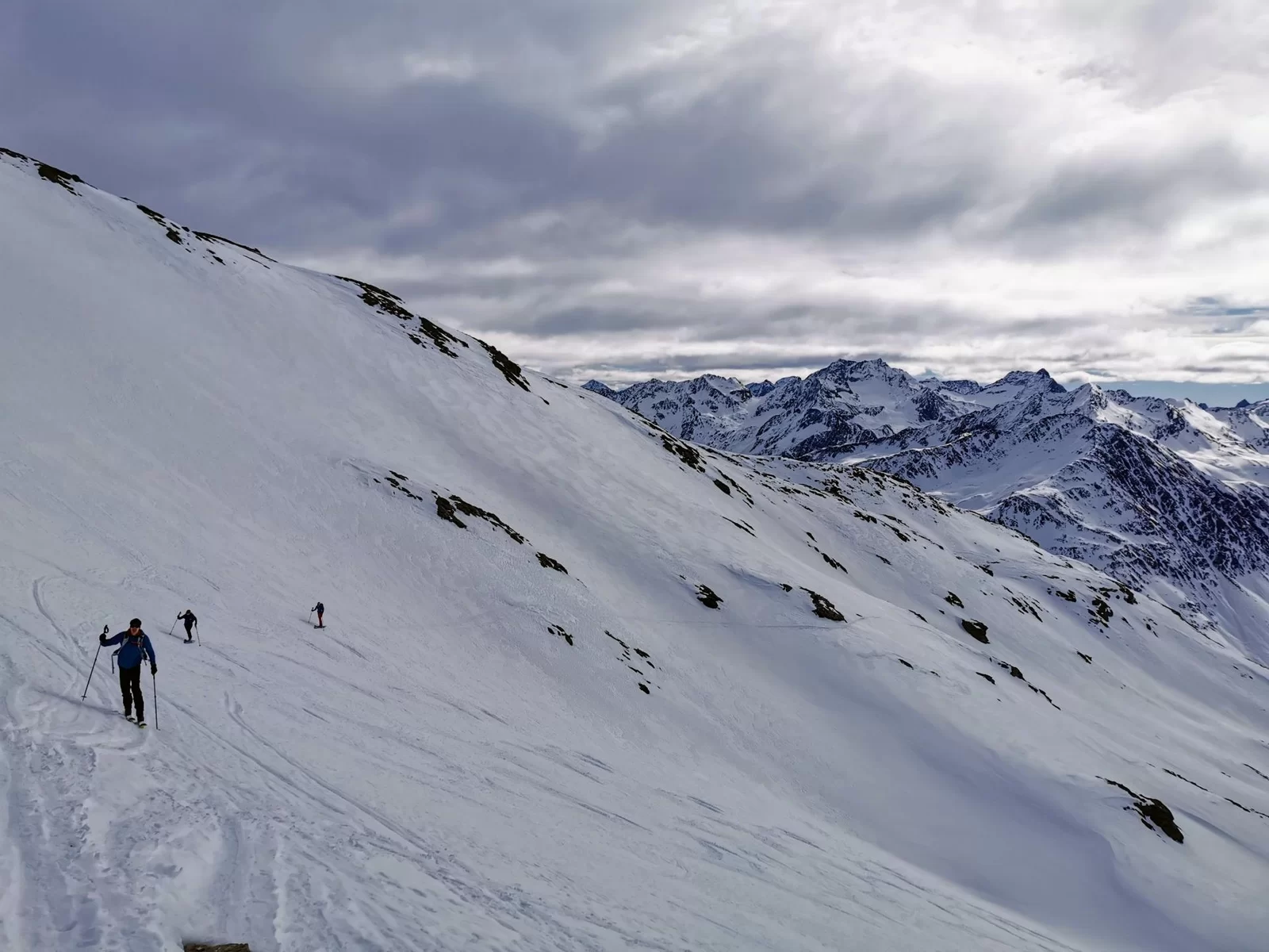 Im anschliessend deutlich weniger befahrenen und beschneeschuhten Terrain folgte der finale Aufstieg zu unserem windstillen Tagesziel in Bella Italia.