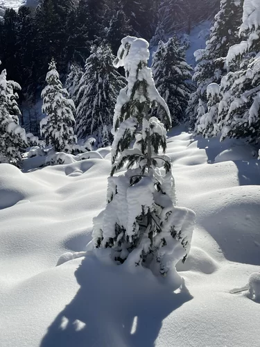 Minus 18 Grad und bester, schon gesetzter Pulverschnee, Märchenwald, ein toller Frühwinter-Genuss!