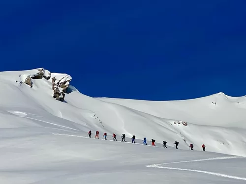 Nach einem feinen Nachtessen in der Saoseohütte (Danke Chatrina, Gigi und Team) und einer kurzen Nacht in der gleichen Hütte, stand der TL um 06:00 Uhr und lief ganz alleine zum Parkplatz nach Sfazù, um mit dem Auto ins Engadin zu fahren. Der Morgenspaziergang am Neujahr war traumhaft. Am Julierpass trafen sich die beiden TL Hanspeter und Ezio mit den restlichen Teilnehmern. Gemeinsam fuhren wir zum PP Val D'Agenl, um die die Tour zum Piz Campagnug in Angriff zu nehmen. Die Schnee- und Wetterverhältnisse hätten nicht besser sein können. Der Start ins neue Jahr ist mehr als gelungen. Bis zur nächsten Tour. Ezio + Hanspeter.