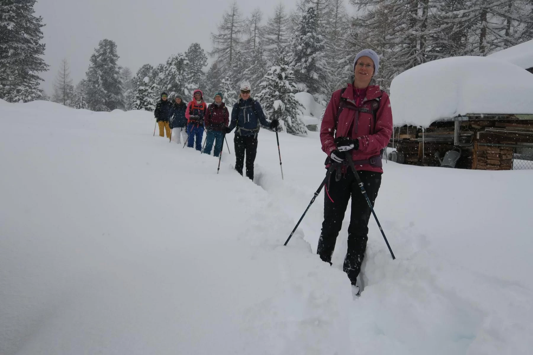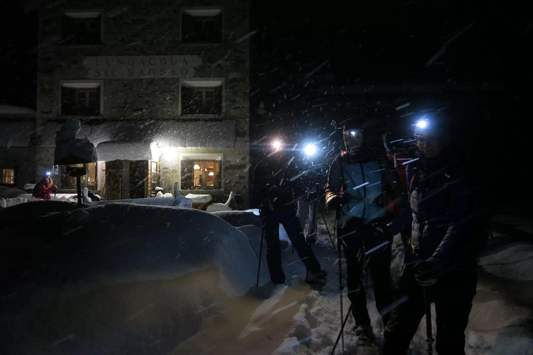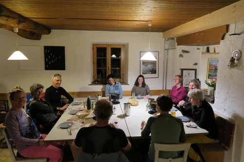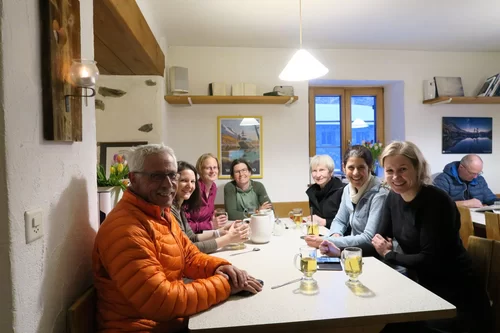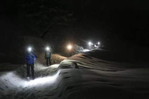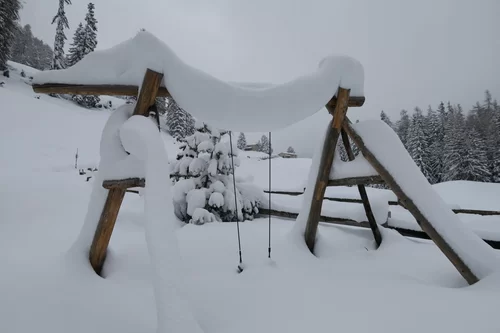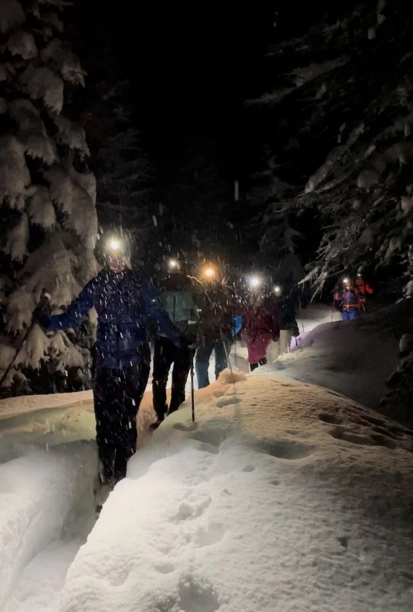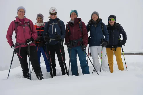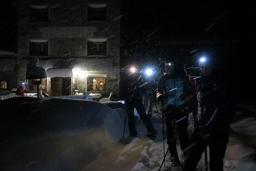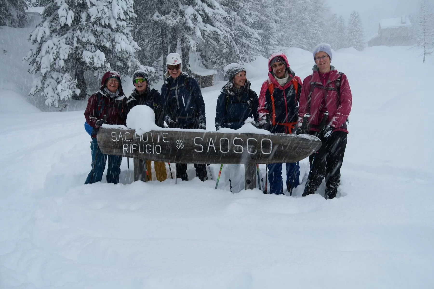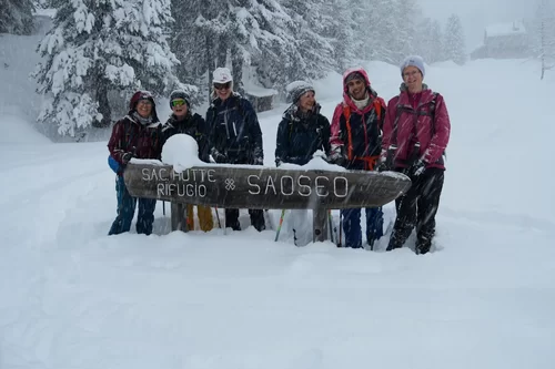 Die Gruppe traf sich trotzt schlechtem Wetter um 15:30 Uhr beim PP Sfazù. Heute mit Schneeschuhen anstatt Tourenski. Als ich die Schneeschuhtour ausgeschrieben habe, dachte ich, das Interesse sei gering. Der Ezio hat sich getäuscht. Auch diese Sparte scheint gefragt zu sein. Mal schauen, was man in Zukunft machen kann. Die Teilnehmerinnen haben bereits durchblicken lassen, dass der Donnerstag für sie passen würde. Die 6-Gruppe, eine Teilnehmerin stieg später mit 3 Mitglieder des Vorstandes auf, und der TL schnallten die Schneeschuhen an und stiegen in Richtung Saoseohütte hoch. Bei knietiefem Schnee wühlte sich die Gruppe durch die unberührte Natur durch. Die Verhältnisse hätten nicht schöner sein können. In der Saosehütten gab es ein feines Fondue. Danke an Chatrina, Gigi und Team für die Gastfreundschaft. Gegen 20:00 Uhr und immer noch mit starkem Schneefall ging es in Richtung Sfazù zurück. Eine gelungene Schneeschuhwanderung mit einer zufriedenen Gruppe. Teilnehmerinnen: Cornelia, Doris, Sylvia, Marion, Milena, Francesca, Susanne + TL. Christian, Bernd und Kirsten sind mit Tourenski auf. Bis zur nächsten Tour. Ezio