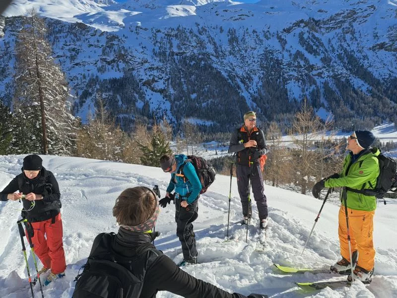 Die Ausschreibung war wieder mal schwierig (wie viel Schnee kommt noch, wie gross wird das Lawinenrisiko sen...?), das Wetter am ausgewählten Datum zum Glück nicht (strahlend schön. Punkt!) Die Auswaht der Alternative fiel am Vorabend auf den Chalchagn Pitschen. Bei ungewohnt kalten Morgentemperaturen ging es bergan, an der Sonne wurde es bald angenehm warm. Die Hänge fast unverspurt. Unterhalb des Gipfels dann Zwangsumkehr, weil uns der oberste Hang zu heikel war. Die Abfahrt dann ein voller Genuss, bis ca. in der Hälfte des Laviners. Dort verstanden wir dann auch, warum die bestehende Abfahrtsspur aussah "wie mit dem Heuschlitten gefahren". Ein perfekter Start in den Tag. Danke allen für's Mitkommen und Dabeisein.