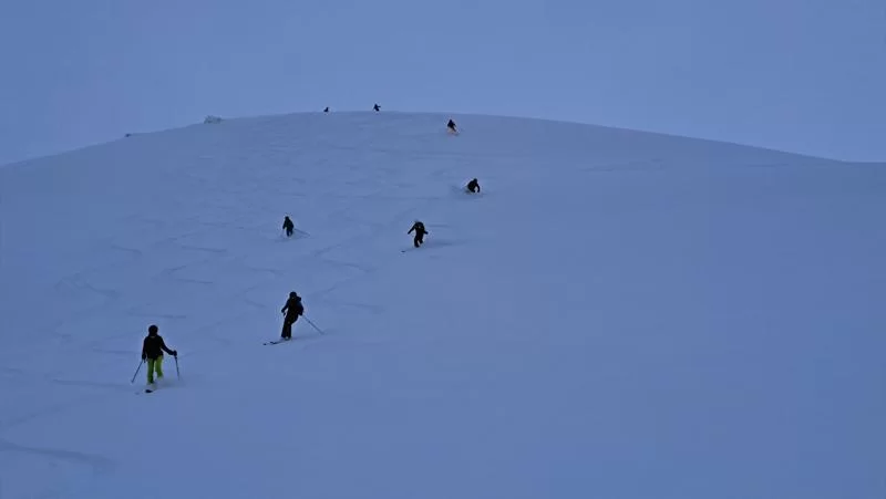 Die Wetterprognose war seit Tagen nicht so toll für heute. Dennoch trafen sich 10 SAC-Mitglieder beim Bahnhof Madulain für die heutige Tour. Und wie sich spätestens in der Abfahrt zeigte, lohnte sich das Aufstehen heute besonders. Traumhafte Schneeverhältnisse, bester Powder von oben bis unten.