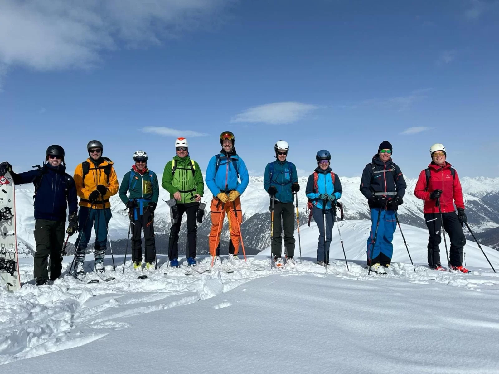 Der Wärmeeinbruch vom Mittwoch lässt bezüglich Schneequalität nicht viel Hoffnung. Im Aufstieg stapfen wir bei bestem Wetter fleissig durch den Bruchharsch... Unterbrochen von ein paar Pausen erreichen wir gegen Mittag den Gipfel und geniessen das Panorama mit den frisch verschneiten Bergen.