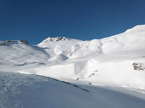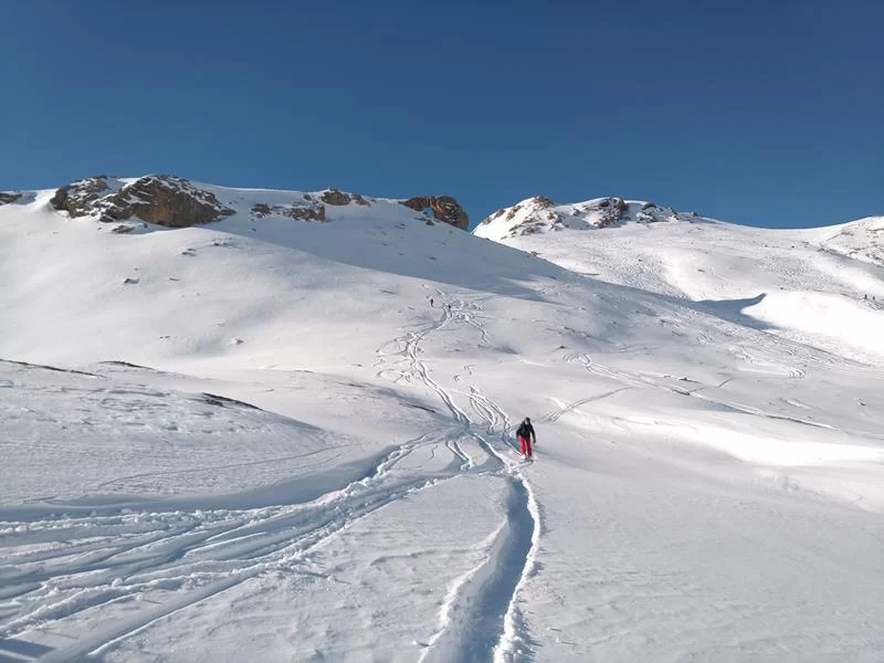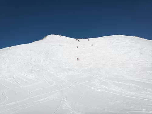 Bei der Abfahrt mussten wir die Augen offen halten, da überall unter der dünnen Schneedecke Steine versteckt waren.