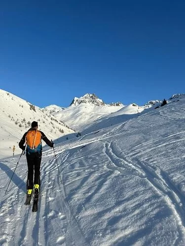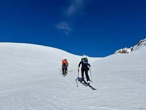 Die Herausforderung war gross. Die Freude und das Erlebnis noch viel grösser. Der Aufstieg war ein Genuss richtig schöne Skitourenverhältnisse. Der Abstieg bis zu Porta d’Es-cha auch sehr gut, dann wurden wir von der Kaltfront eingeholt. Der Abstieg im totalen Nebel und Schneesturm war sehr anspruchsvoll. Als wir die Hütte gefunden hatten, waren wir sehr glücklich. Ziemlich durchnässt und schneeverklebt haben wir die Hütte betreten. Nach einer warmen Suppe ging es dann weiter an unseren Ausgangspunkt.
