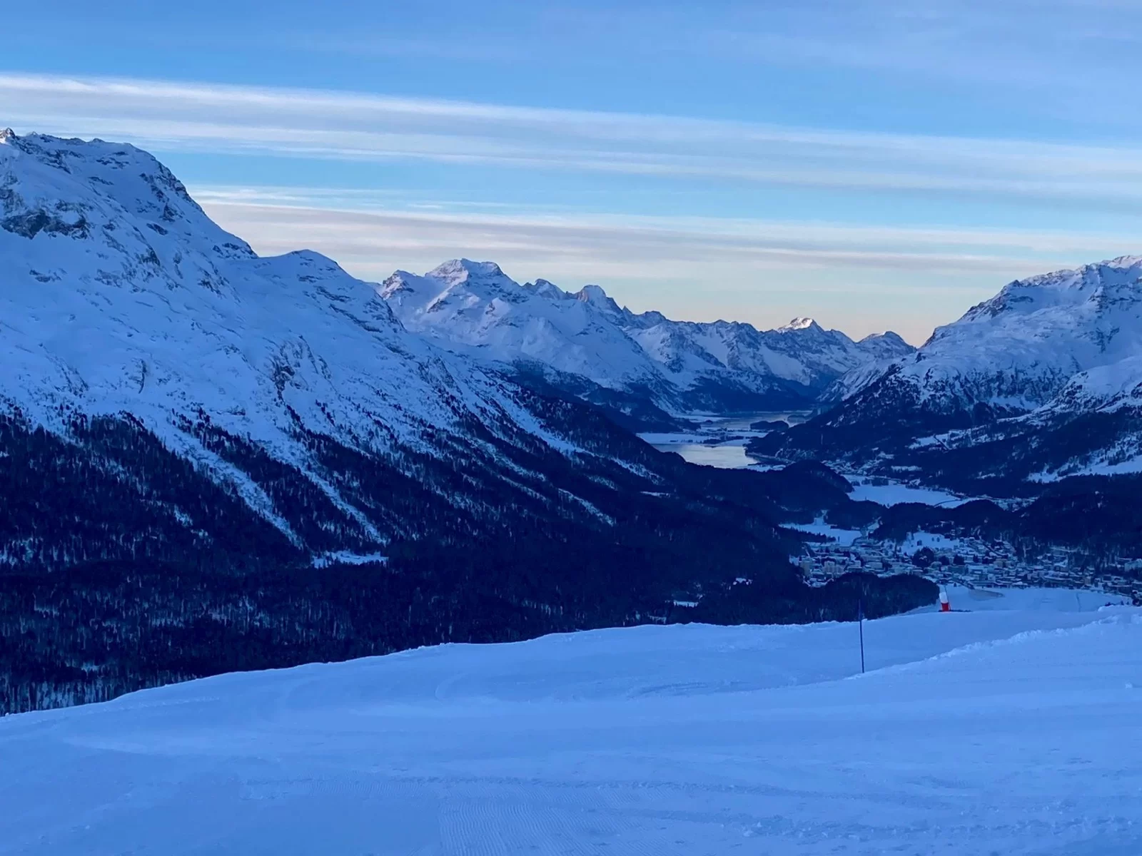 Bei minus 14 Grad beginnt diese Tour an der Talstation Punt Muragl. Dabei sind Andrea, Hans-Ruedi, Magnus, Silvia, Susanne, Susi und TL Duri. Die ersten 709 Höhenmeter überwinden wir bequem mit der Standseilbahn, worüber niemand traurig ist, Corviglia liegt bereits in der klaren Morgensonne, der Himmel strahlt blau und verspricht einen dieser unvergesslichen Tage im Oberengadin. Auf dem breiten, leicht aufsteigenden Winterwanderweg, der zum Schwatzen einlädt oder zum Gedanken schweifen lassen, bringen wir diese erste Etappe locker hinter uns. Dann geht es stetig aufwärts, in einem für uns alle angenehmen Tempo, bis wir eine Anhöhe erreichen. Nach einer kurzen Abfahrt auf den Fellen erreichen wir den Lej Muragl, der im tiefen Winterschlaf liegt. Ein fieser kalter Wind macht sich auf dieser vorwiegend im Schatten liegende Tour bemerkbar. Man freut sich in diesem Moment, wenn das breite Sonnenband, welches unterhalb des Gipfels liegt, erreicht ist. Nachdem wir die Skier am Fusse des Gipfels deponiert haben, erklimmen wir den Gipfel durch den tiefen Schnee. Mit welcher klaren Weitsicht auf die Berge nah und fern wir hier belohnt werden, lässt sich kaum beschreiben.