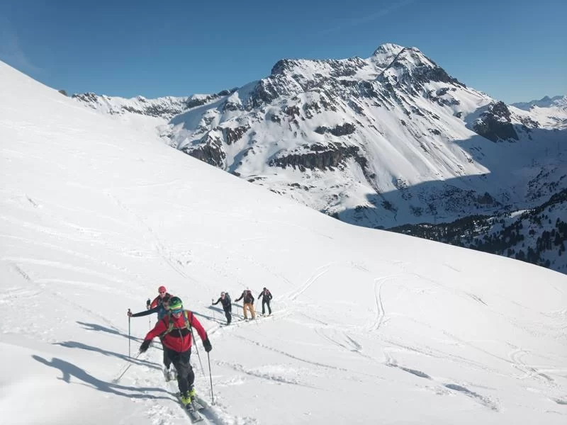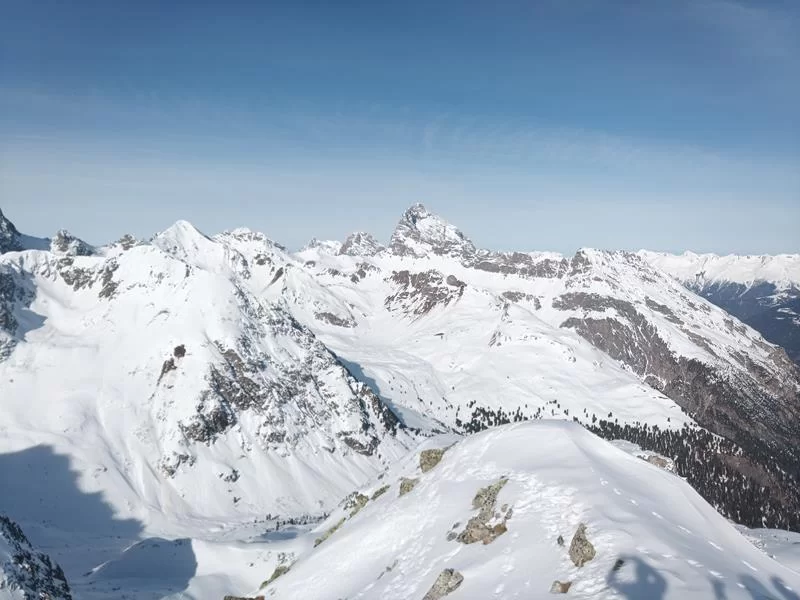 Nachdem wir mit Zug nach Preda fuhren, starteten wir um 7.30 Uhr in Richtung Lai da Palpuegna, weiter ging es über diverse Steilhänge zum K2. Auf der Abfahrt hatten wir zu oberst noch Pulverschnee, nachher Bruchharsch, Hartschnee und zwischendurch auch Sulz.