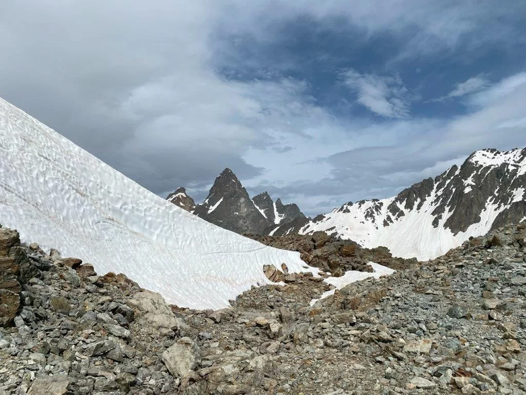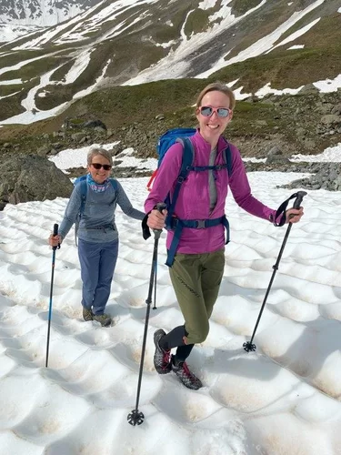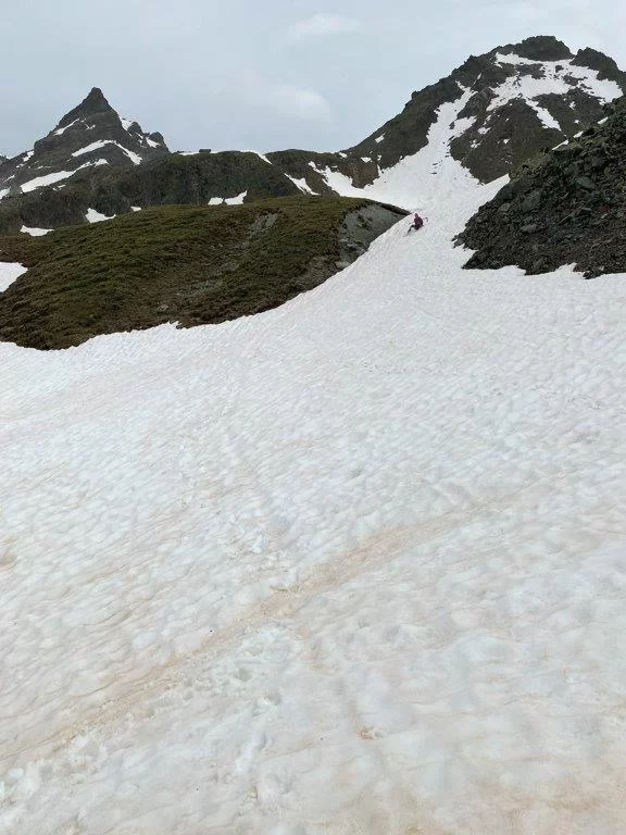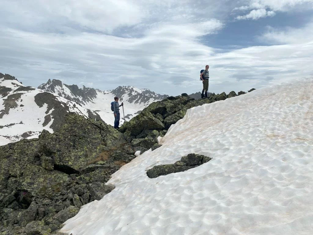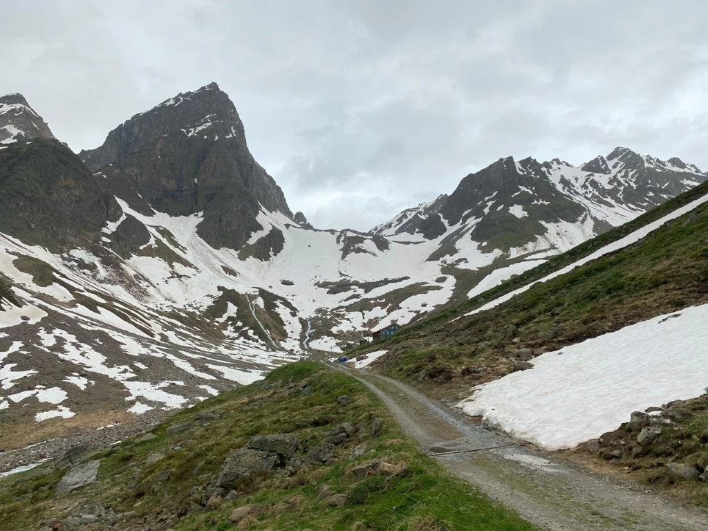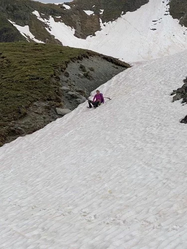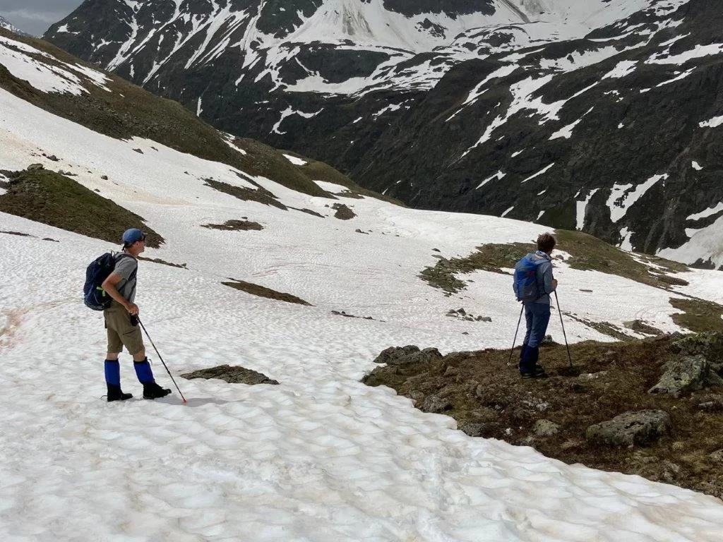 Optimistisch starteten wir bei schwülwarmer Witterung in Ardez zu unserer Rundwanderung. Zuerst ging es zügig hoch nach Plan Chamuera, anschliessend nur noch leicht ansteigend bis Alp Valmala und Alp Urezzas. Nach dem Steilhang kamen wir auf die Höhe wo der Schnee noch nicht abgeschmolzen ist. Und schon bald war die Furcletta in Sicht. Von diesem Pass aus, sah der Weg zum Piz da las Cavigliadas nicht so weit aus, sodass wir noch ein Stück weit hoch gingen. Über die Schneefelder rutschten wir zum Teil hinunter, wie auf Skiern. Vorbei an einem türkis blauen Seelein kamen wir schon bald zur Tuoihütte. Nach einer ausgedehnten Rast mit Kuchen und Kaffee, nahmen wir den Fahrweg hinunter nach Garda unter die Füsse. Leider setzte der Regen früher als prognostiziert ein, jedoch mit der warem Temperatur, war es nicht sehr unangenehm.