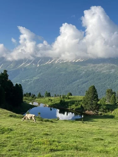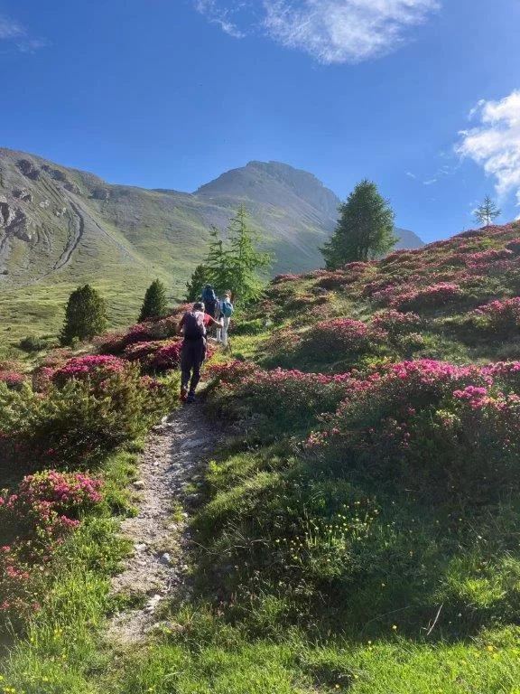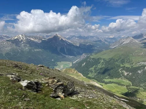 Wir starteten bei Plaun dals Bovs, gemütlich wanderten wir zur Alp Munt, weiter zum Lai da Juata und zur Alp Champatsch. Beim Wegweiser, wo man nach S-charl gehen kann, entschieden wir uns für den Weg über den Pass Costainas und Fuorcla Sassalba, Lai da Lü. Nach einem kurzem Fussbad im Seelein, teilten wir uns, Margrith und Mitar begaben sich auf den Abstieg, Lenka und ich stiegen noch zum Muntet auf, um das Panorama von dem Gipfel aus, zu geniessen. Anschliessend begaben auch wir uns auf den Abstieg, bei der Alp Tabladatsch trafen wir wieder auf Margrith und Mitar. Gemeinsam stiegen wir hinunter nach Santa Maria.