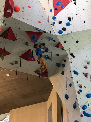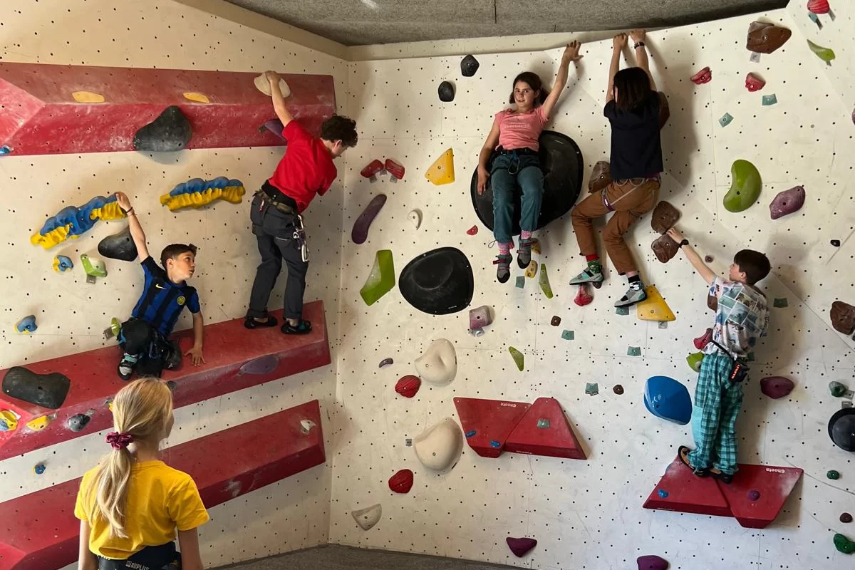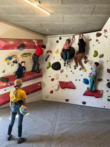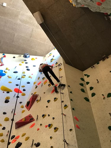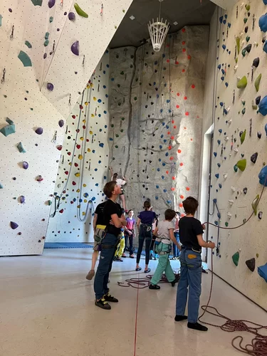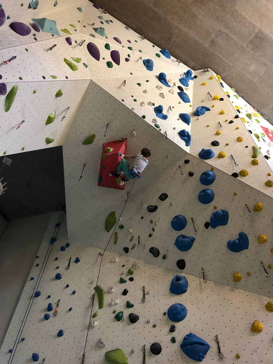 In Chur angekommen stehen wir nach 20min laufen vor dem Kletterzentrum Ap n’Daun. Beim Eintreten der Kletterhalle bleibt denen von uns die das erste Mal darin sind den Mund offen stehen und denen die sie zwar schon kannten erinnern sich wieder an deren Höhe und Routenvielfalt. Auch wenn die Routen die sich über unseren Köpfen erstrecken anfangs etwas einschüchternd waren stellen wir uns alle der Aufgabe hoch hinaus zu klettern und sogar den Schwierigkeitsgrad etwas zu pushen.