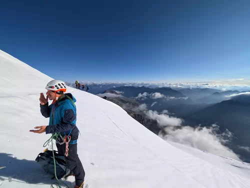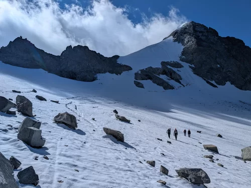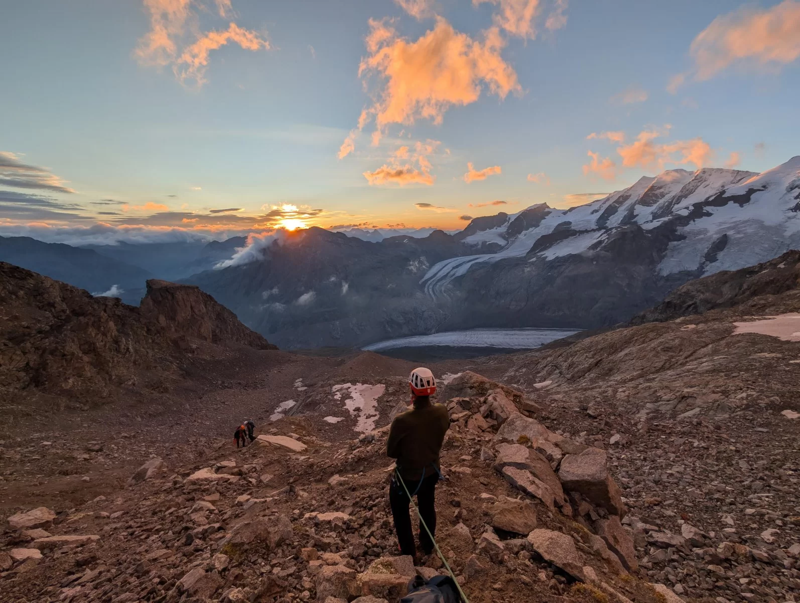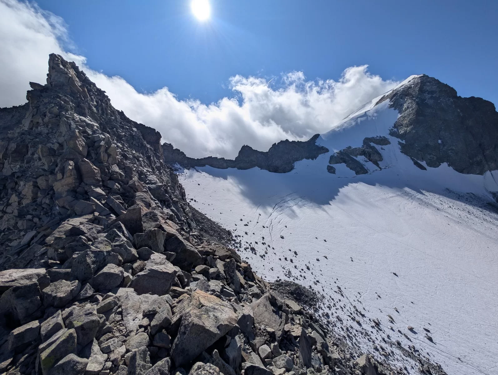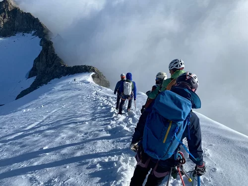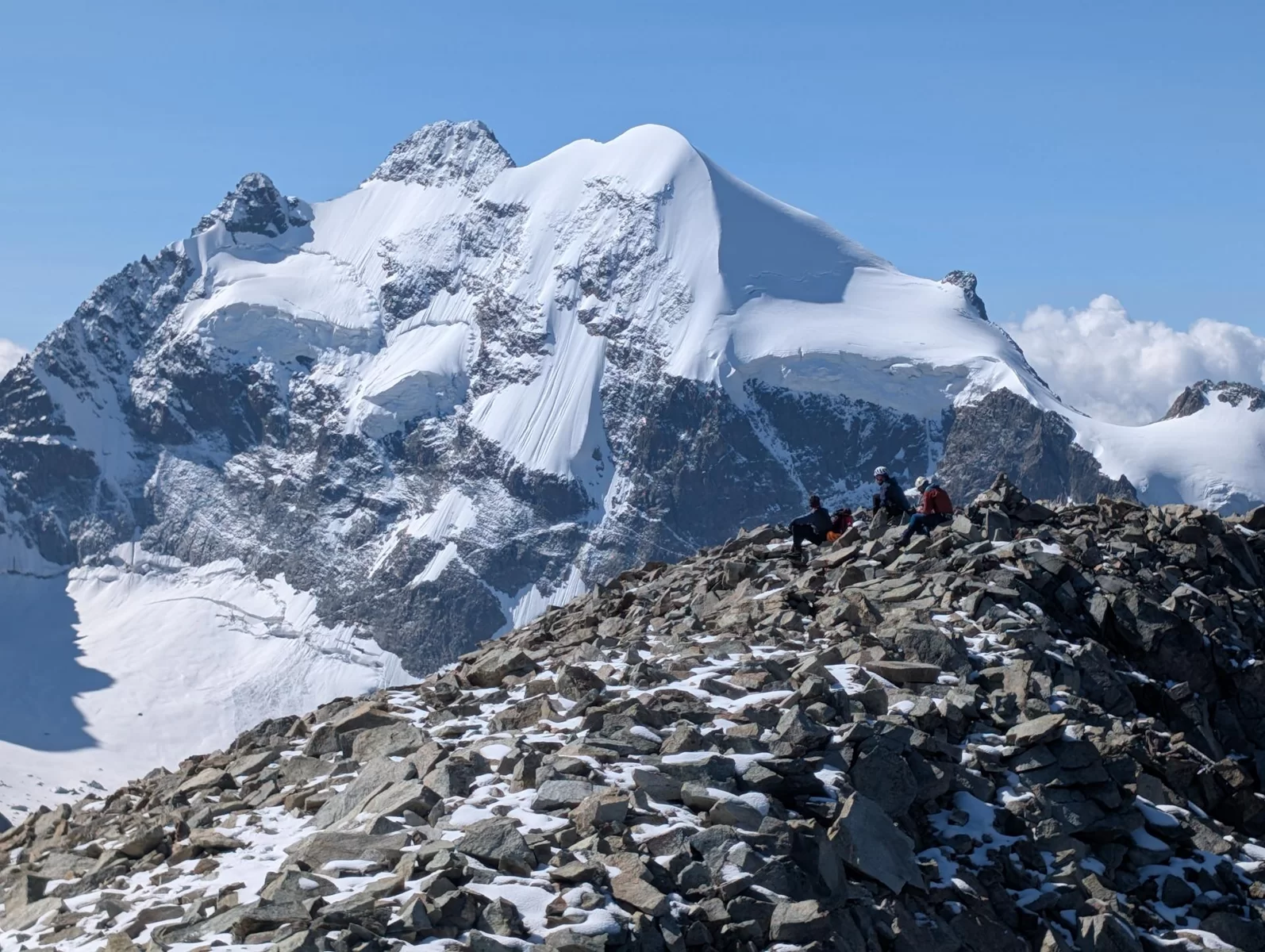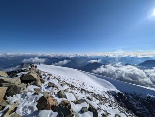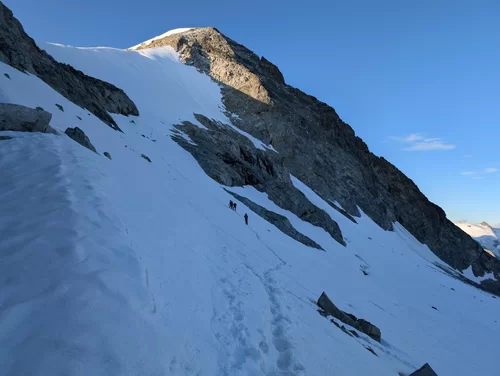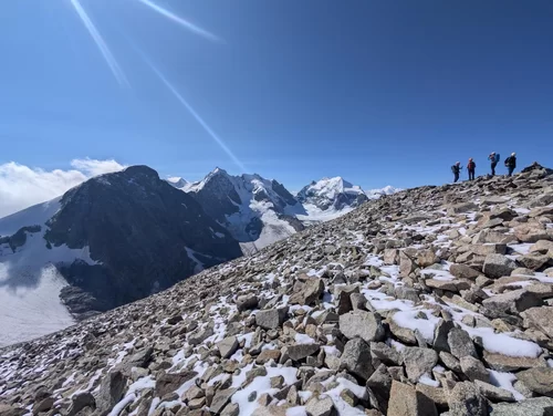 Zurück ging es auf demselben Weg, auf dem wir gekommen waren, jedoch nur bis auf den Vadrettin da Tschierva. Hier zogen wir die Option, noch den Piz Tschierva anzuhängen, den die meisten von uns noch nie bestiegen hatten.