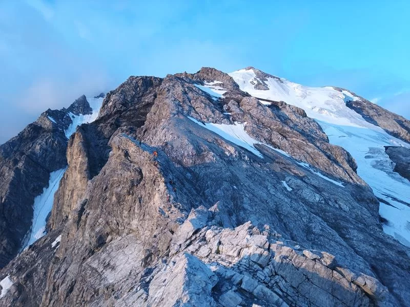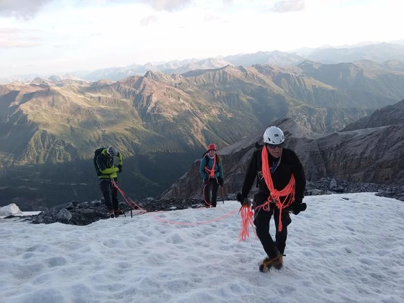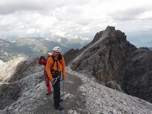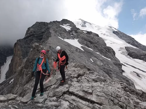 Am dritten Juli-Wochenende stand für unsere Gruppe die Besteigung des Ortlers über die Normalroute auf dem Programm. Nach dem Aufstieg zur Payerhütte verbrachten wir dort eine gemütliche Nacht. Kulinarisch wurden wir mit Suppe, Teigwaren, Knödeln, Gulasch und selbstgemachtem Joghurttiramisu bestens versorgt.Am frühen Morgen starteten wir den Gipfeltag. Der Aufstieg über den Normalweg bot beeindruckende Ausblicke und spannende Passagen. Je näher wir dem Gipfel kamen, desto mehr zeigte sich das Wetter von seiner wilden Seite. Auf dem höchsten Punkt Südtirols empfing uns stürmischer Wind, der den Aufenthalt am Gipfel kurz, aber eindrucksvoll machte. Trotz der anspruchsvollen Bedingungen war es für alle ein grossartiges Erlebnis. Dank guter Vorbereitung, Teamgeist und der umsichtigen Führung durch die Tourenleiter kehrten wir sicher zur Payerhütte zurück. Beim Abstieg stoppten wir auf der Tabaretta-Hütte und liessen die Tour bei Knödeln und bestem Kaiserschmarrn gemütlich ausklingen.