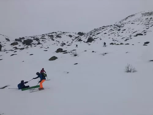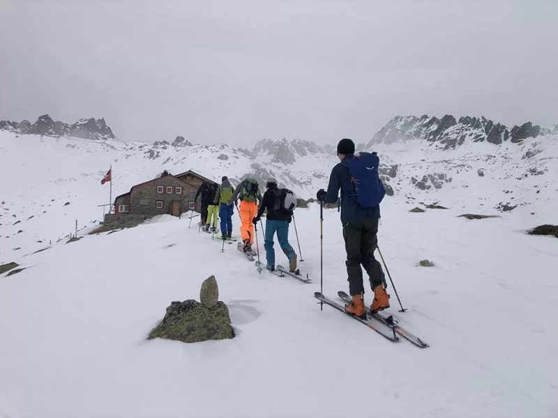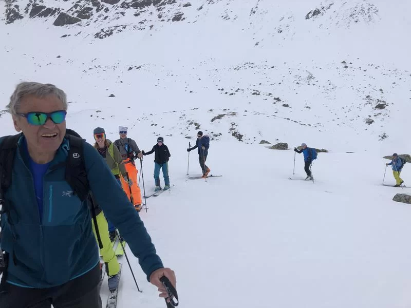 Am Di.25.Febr. trafen sich die angemeldeten Teilnehmer um 8:00 Uhr zu der von Reto geführten Tour auf dem PPl Chastlatsch in Zuoz. Der Plan war, in das Val Müra aufzusteigen und bis zu der Messtation zu gehen. Danach Abfellen und zur Es-cha-Hütte abzufahren. Da jedoch das Wetter immer schlechter wurde, entschied Reto nur bis zur Hütte zu gehen und dort einkehren. Diese Entscheidung war mehr als gut, denn für die Abfahrt war die Sicht alles andere als gut, und der Schneemangel liess auch nur eine erschwerte Abfahrt zu. Es war trotz allem eine schöne Tour und wir Teilnehmer bedanken uns herzlich mit einem „grazcha fich“ bei Reto.