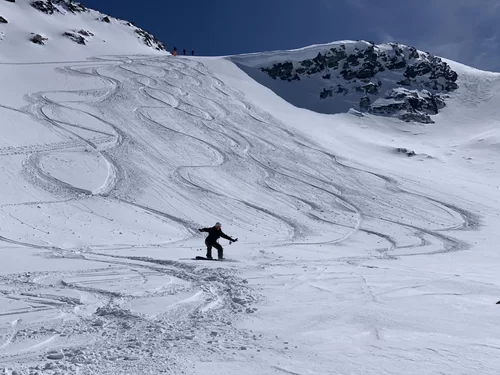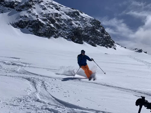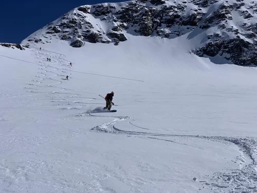 Heute wäre ein Aufstieg zum Gipfel ohne Steigeisen ein Risiko gewesen, also vergnügten wir uns mit Blick Richtung Badile, Roseg, Plattas usw. Die Abfahrt war wunderschön, Pulver bis zum Lej Sgrischus, wo wieder aufgefellt werden musste. Der erneute Aufstieg zur Bergstation in praller Sonne und mit unzähligen Wumm-Geräuschen war als Abschluss nochmals eine genussvolle Herausforderung. Grazcha fich allen Teilnehmer*innen!