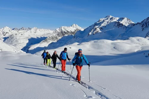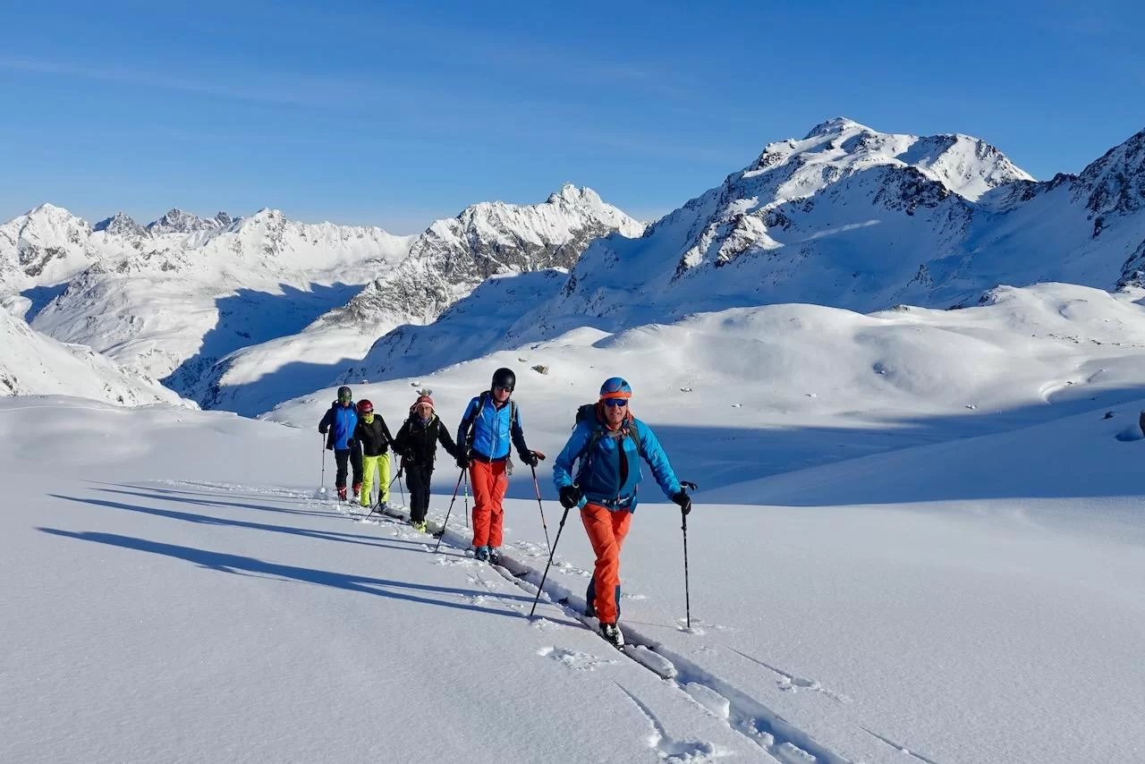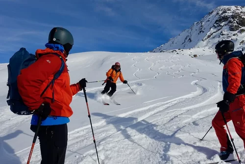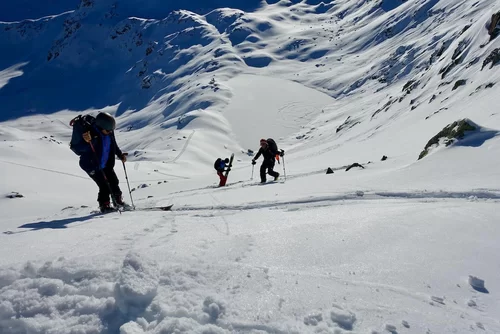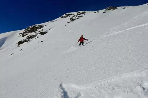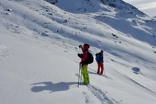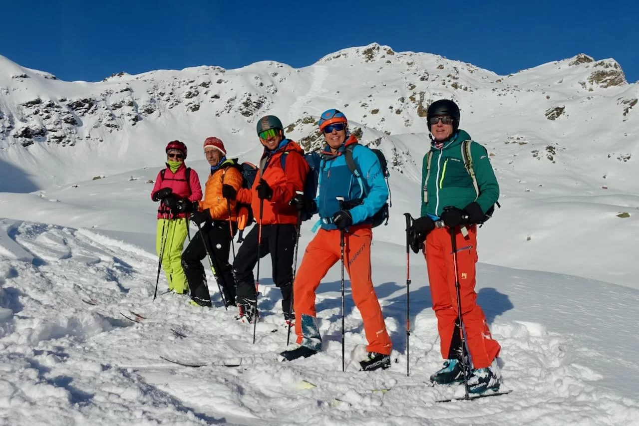 Wir machten uns auf, das Jörihorn zu erklimmen ein Klassiker der Region. Schon bei der Ankunft am Ausgangspunkt begrüsste uns strahlend blauer Himmel und die knackigen Temperaturen versprachen einen perfekten Skitag. Der Schnee war frisch, aber nicht zu tief – ideale Bedingungen für eine wunderschöne Skitour. Während der ersten Stunde konnten wir den herrlichen Ausblick auf das umliegende Bergpanorama geniessen. Das Jörihorn – unser Ziel – türmte sich sanft vor uns auf, und die Route wies uns in stetem Anstieg in die Höhe. Wir hielten kurz an, um die atemberaubende Aussicht zu bewundern und die Ruhe der Natur zu geniessen. Der Gipfel des Jörihorns war schon bald geschaft und auch die Stimmung in der Gruppe war hervorragend – voller Vorfreude auf die bevorstehende Abfahrt. Am Gipfel entschieden wir uns für die Abfahrt zu den Jöriseen. Die Abfahrt war ein wahres Highlight. Vom Gipfel aus fuhren wir zunächst über steile, unverspurte Hänge, wobei der Schnee zunehmend fluffiger wurde. Die Verhältnisse waren ideal. Wieder die Felle montiert spurten wir durch eine fantastisch einsame Winterlandschaft zum Übergang bei Punkt 2'771 mit anschiessender Abfahrt durch frischen Pulver zurück zur Wägerhütta. Besten Dank an Antonia, Philipp, Matin, Ezio und Rainer. Die Kombination aus sonnigem Wetter, guter Schneelage und einer motivierten Gruppe machte diese Tour zu einem unvergesslichen Erlebnis. TL Bert